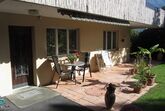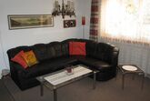 Grosszügiges Wohn-/Esszimmer mit Ecksofa, Sat-TV, Telefon und Radio. Sowie Zugang zum Garten mit möblierter Terrasse. Küche