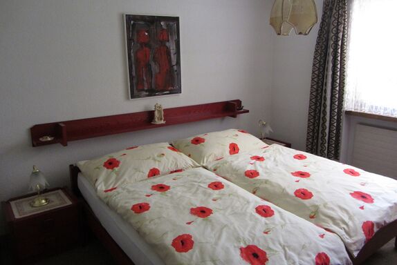 1 Schlafzimmer mit Doppelbett und Schrank, Zusatzbett auf Wunsch vorhanden Badezimmer