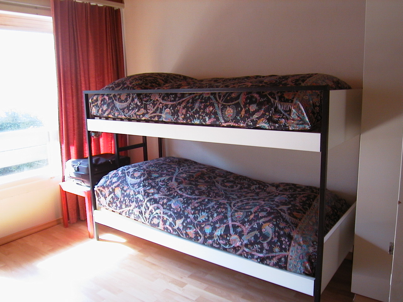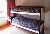 1 Schlafzimmer mit grossem Doppelbett und Kleiderschrank, 1 Kajütenbett und Kleiderschrank mit viel Ablagefläche.Badezimmer