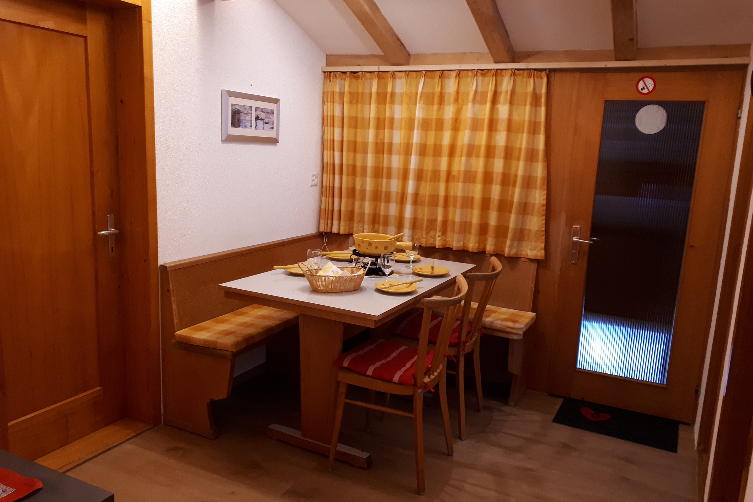1 Schlafraum, Backofen, Balkon, Fondue-Set, Grillmöglichkeit, Haustiere auf Anfrage, Kaffeemaschine, Küche, Kühlschrank, Terrasse, Töpfe Pfannen Geschirr, TV, Waschmaschine im Haus, WiFi