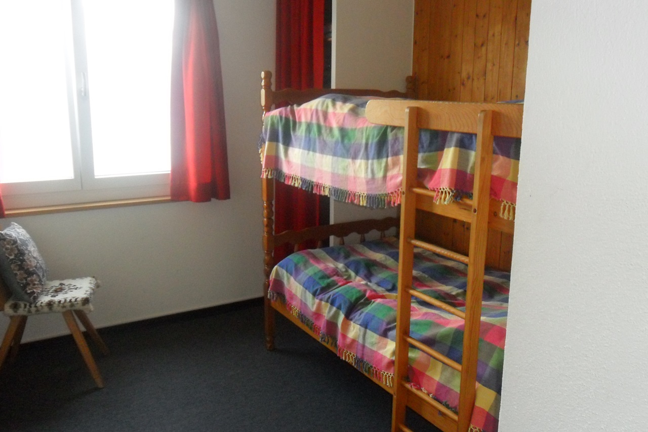 Die Ferienwohnung verfügt über zwei Schlafzimmer, eines mit Doppelbett und eines mit Kajütenbett ein Badezimmer mit Dusche/WC ein grosszügiges Wohnzimmer mit Fauteuils, Flachbild-TV und Cheminée sowie einen Essbereich eine kleine, gut ausgestattete Küche Inneneinrichtung & Technik