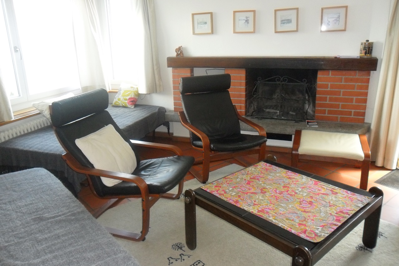 Die Ferienwohnung ist zweckmässig eingerichtet. Das Cheminée im Wohnzimmer macht den Aufenthalt sehr heimelig. Im Wohnzimmer befindet sich ein Flachbild-TV. Ölzentralheizung mit Heisswasseraufbereitung.