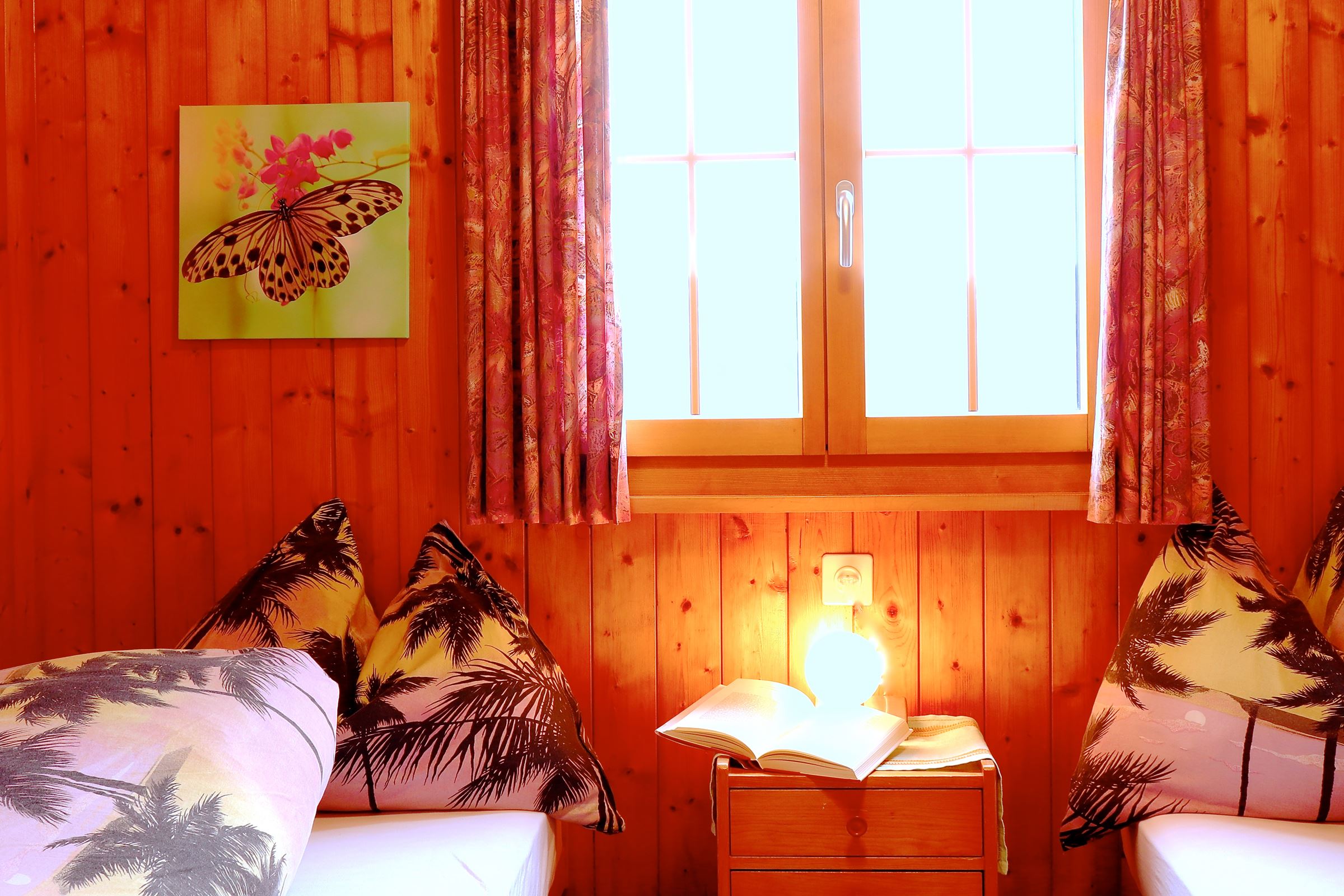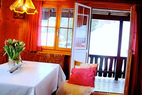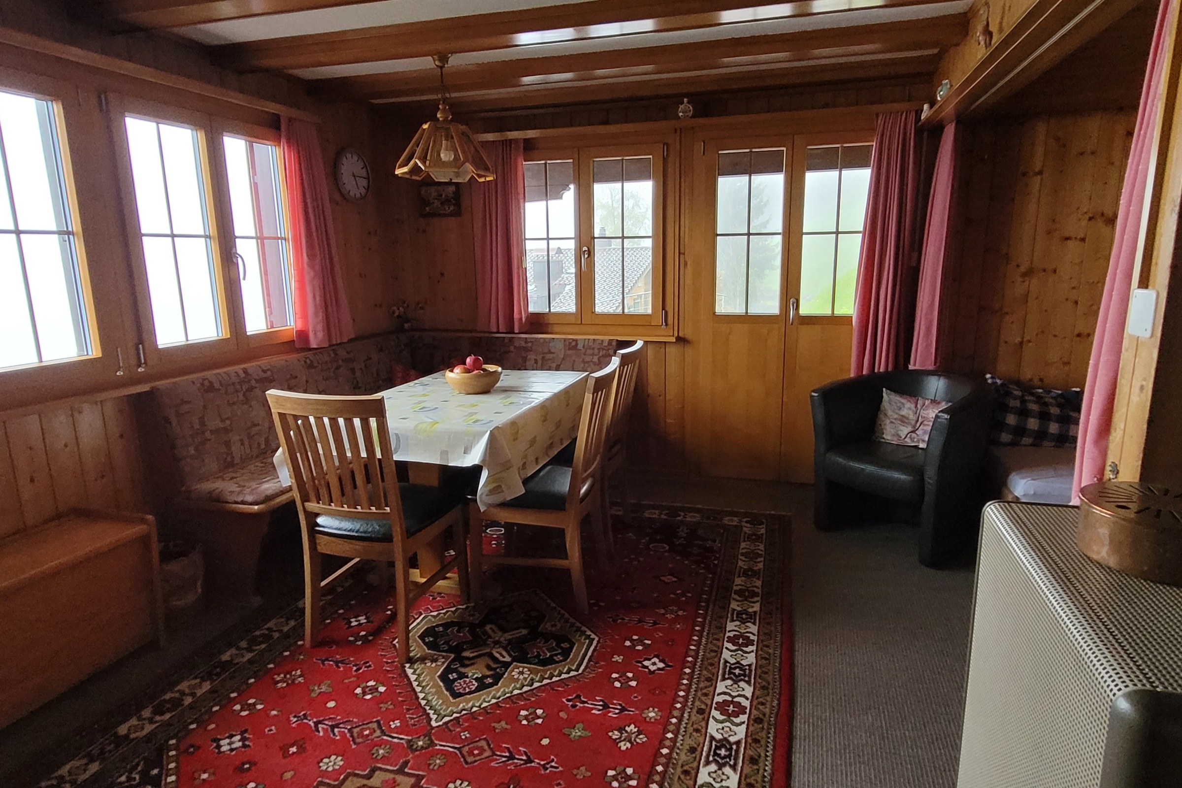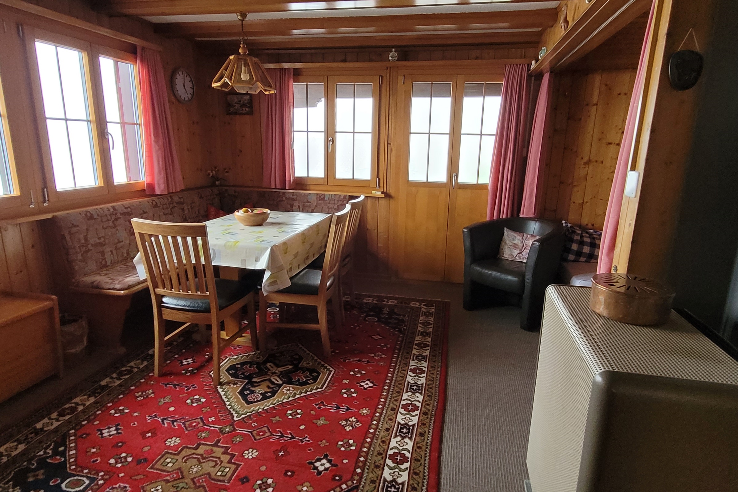 Das Ferienchalet ist rustikal mit viel Holz eingerichtet, was den Aufenthalt sehr gemütlich macht. Zum Ferienhaus gehört ein grosser Balkon. Zudem verfügt das Ferienhaus über einen TV im Wohnzimmer. WLAN ist nicht vorhanden.