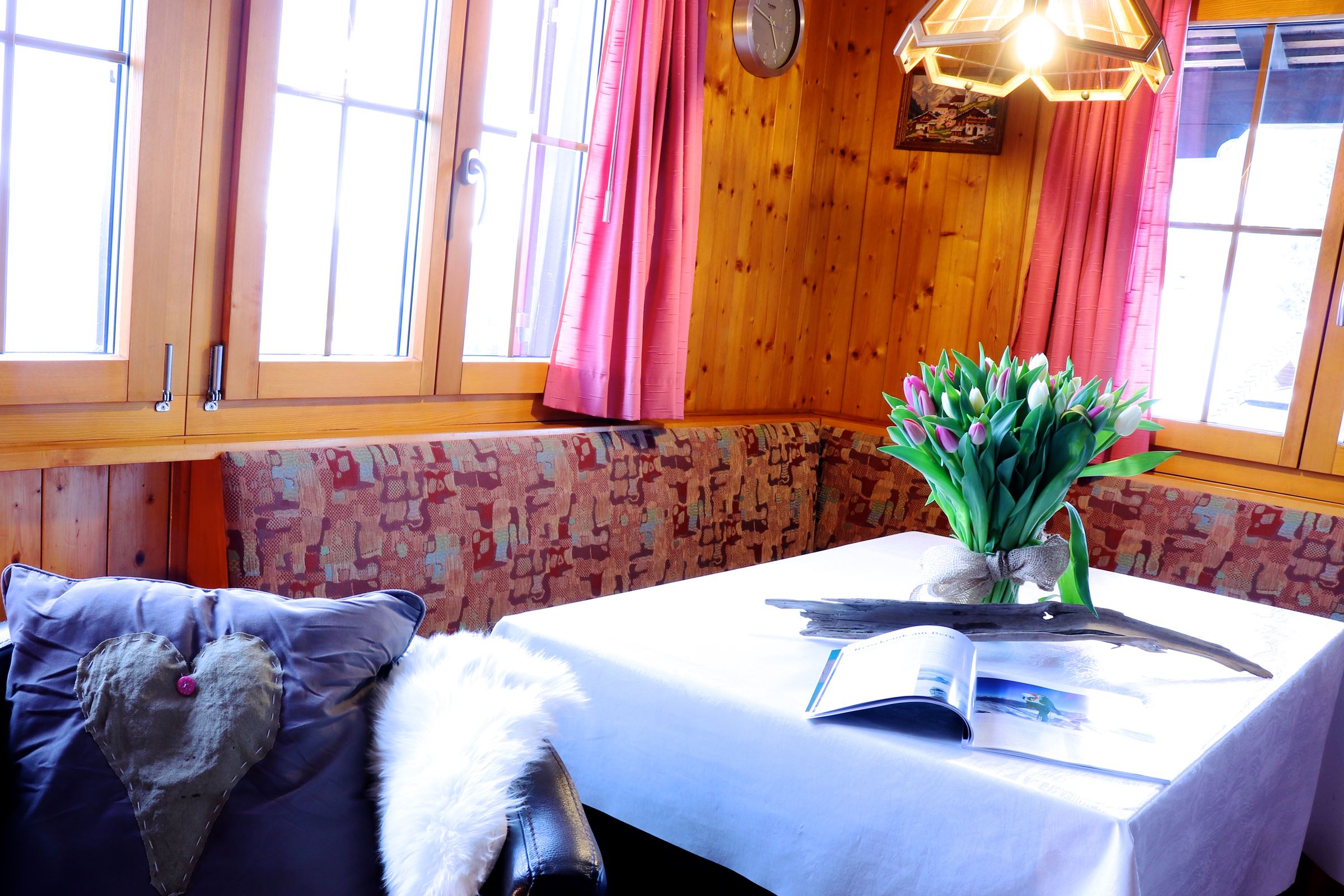 Das Ferienhaus ist gemütlich und rustikal mit viel Holz eingerichtet. Zudem verfügt das Chalet über einen grossen Balkon. Technische Einrichtung