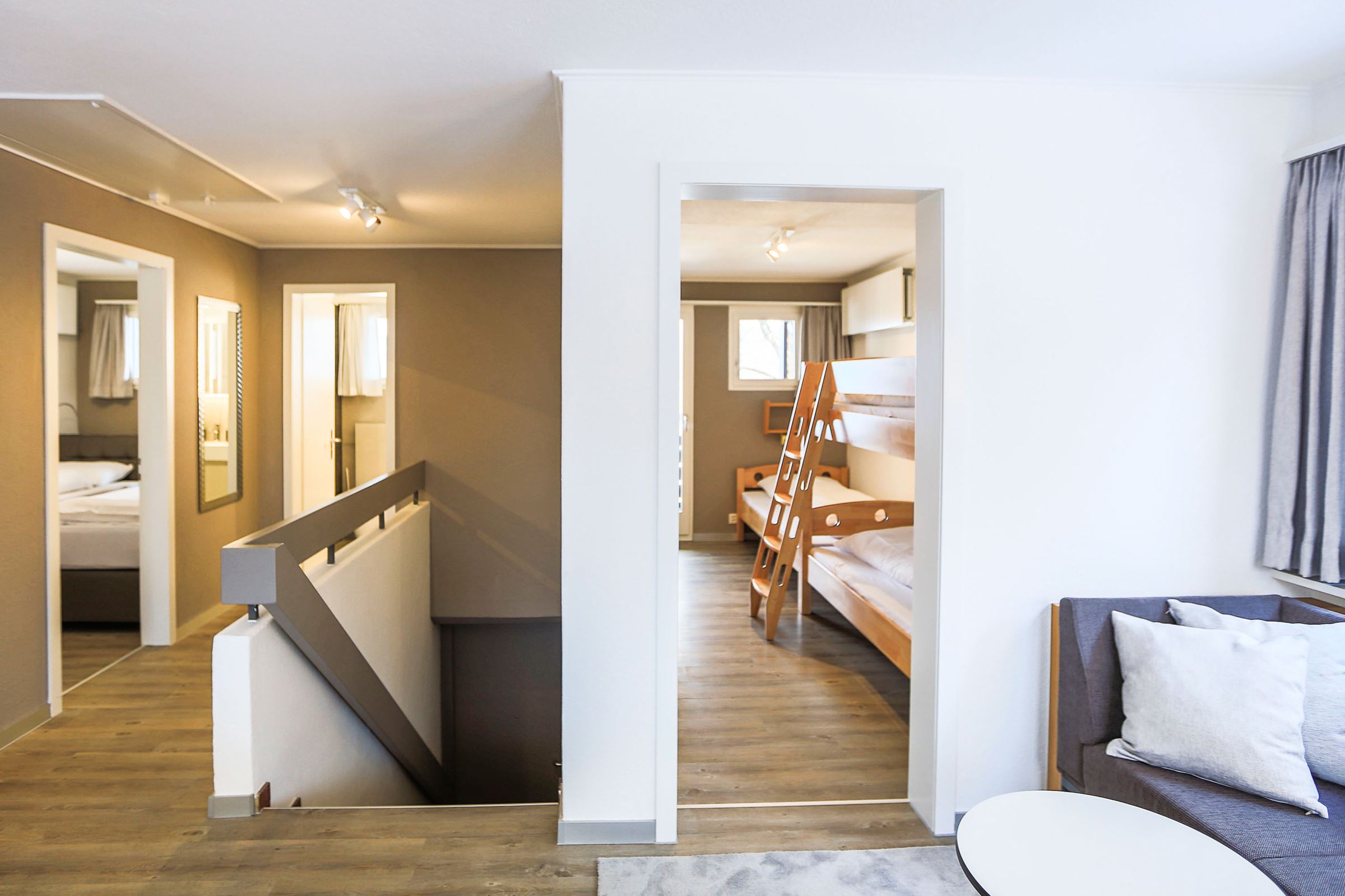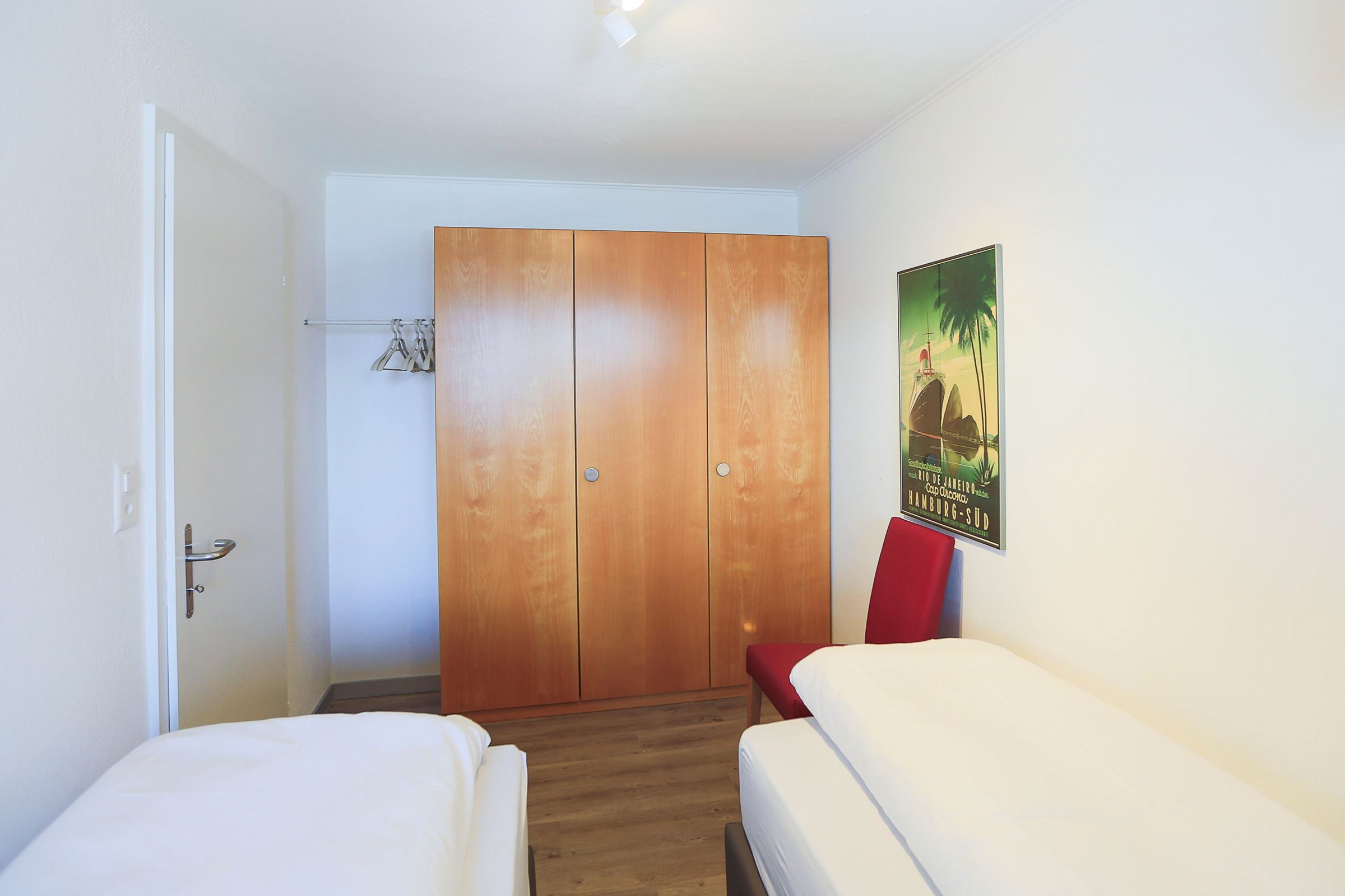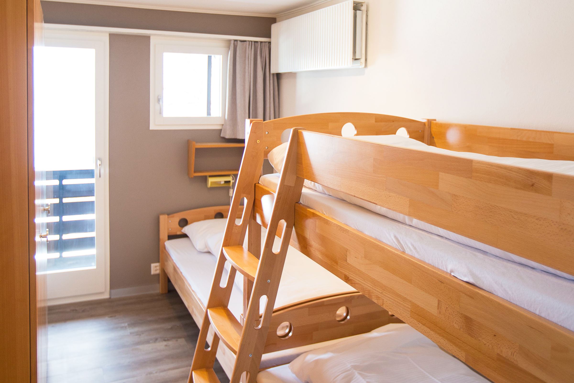 Zwei komplett sanierte und möblierte 3-Zimmerwohnungen mit 5 Betten (2+3), voll ausgestattete Küche, Bad/WC, Balkon und Terrasse. TV mit Kabelanschluss, Radio und WLAN. Alle Betten mit Fixleintuch und nordischem Duvet.