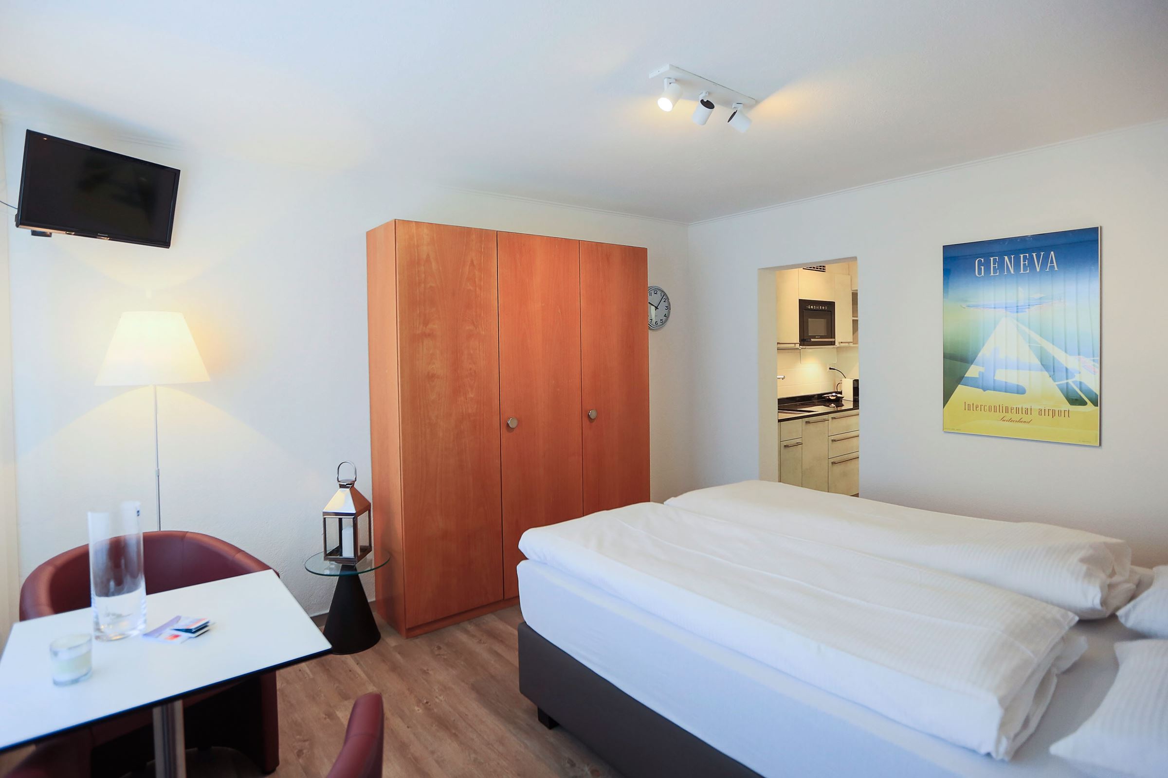 Neu saniertes Studio mit 2 Betten, neu möbliert und voll ausgestatt, mit Küche, Bad/WC, TV mit Kabelanschluss, Radio, und WLAN. Zwei Boxspring Betten mit Fixleintuch und nordischem Duvet.