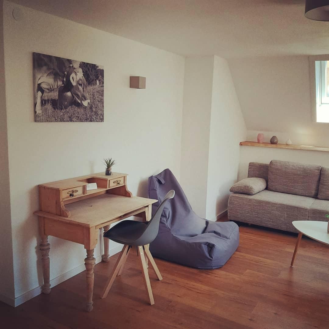 Unsere Ferienwohnung Mittag bietet auf einer Gesamtfläche von 80 qm bis zu 6 Personen Platz. Die helle und freundliche Wohnung liegt im 2. OG unseres Hauses. Es sind 2 getrennte Schalfzimmer mitjeweils einem Doppelbett vorhanden. Zudem besteht die Möglichkeit eine weitere Schalfgelegenheit im Wohnzimmer einzurichten.