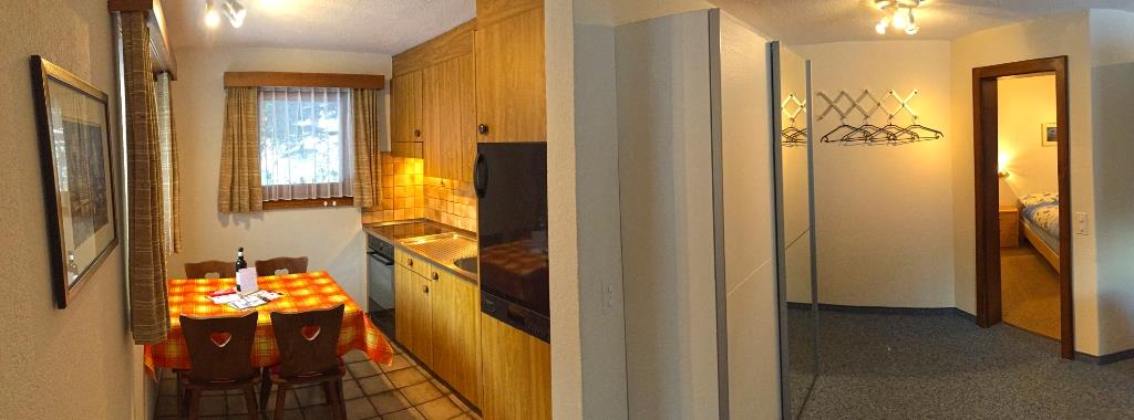 Die Wohnung ist neuwertig und heimelig eingerichtet. Sie verfügt über eine Wohnküche, die mit Backofen, Geschirrspülmaschine, Kühlschrank mit Eisfach, Toaster, Mixer, Kaffeefiltermaschine, Wasserkocher ausgestattet ist. Racletteofen und Fonduegeschirr auf Anfrage. Die Wohnung besteht aus einem separaten Schlafzimmer mit zwei Betten, einem Wohn-/Schlafzimmer mit Flachbildfernseher/Radio und einem Badezimmer mit Dusche/WC. WLAN steht Ihnen in der ganzen Wohnung kostenlos zur Verfügung.