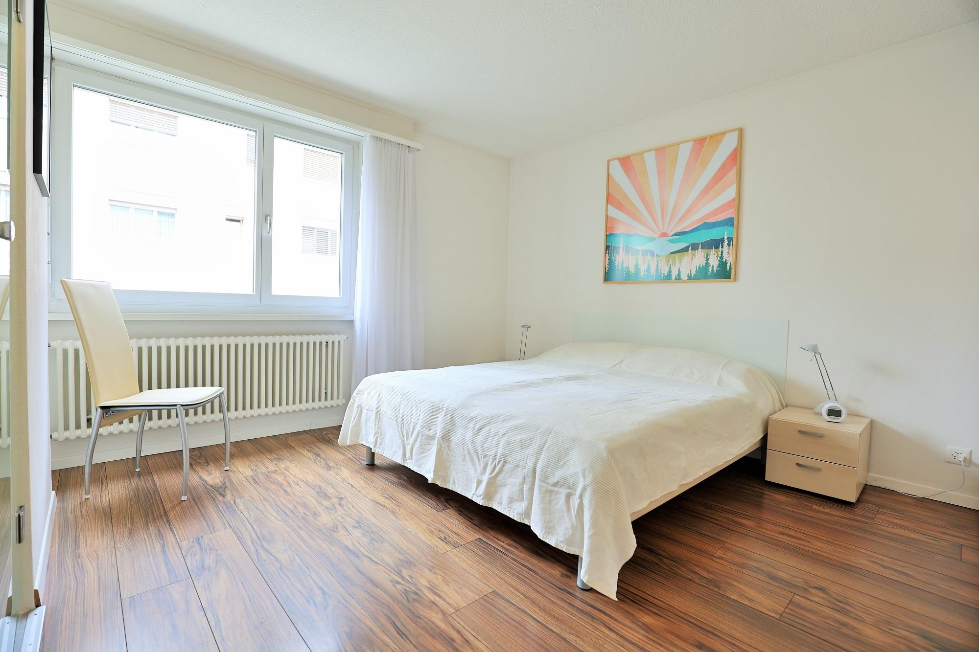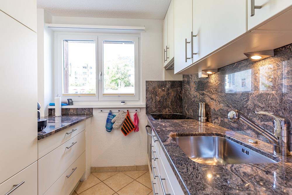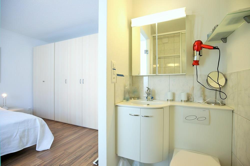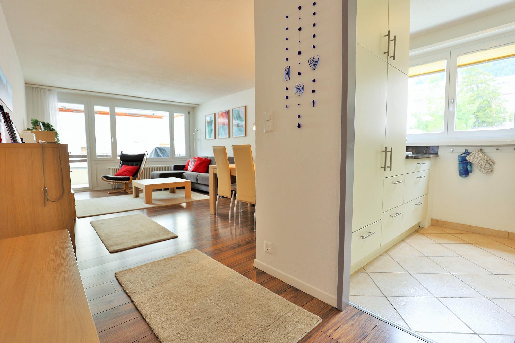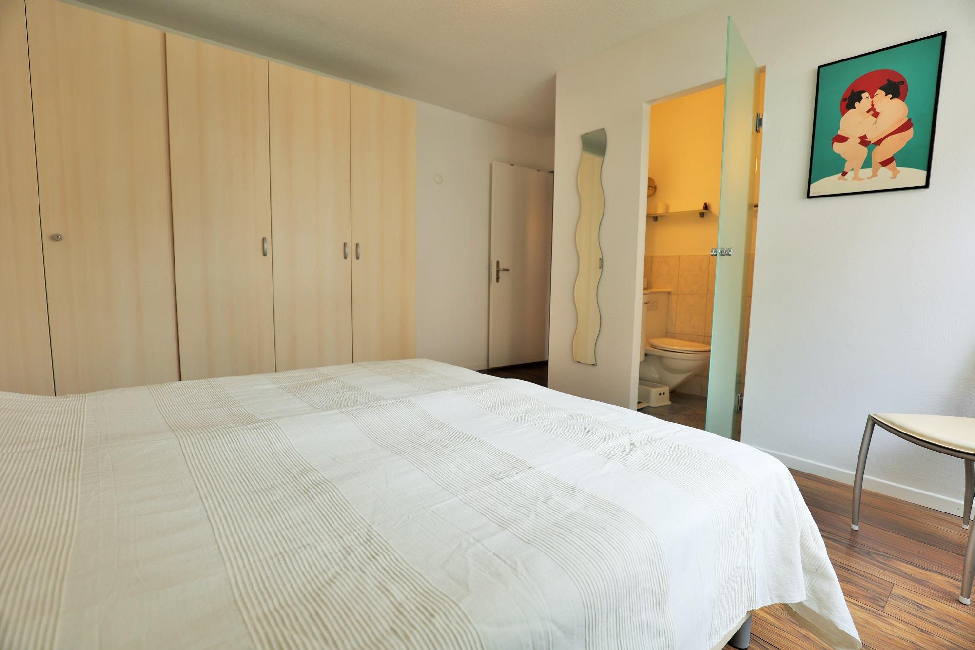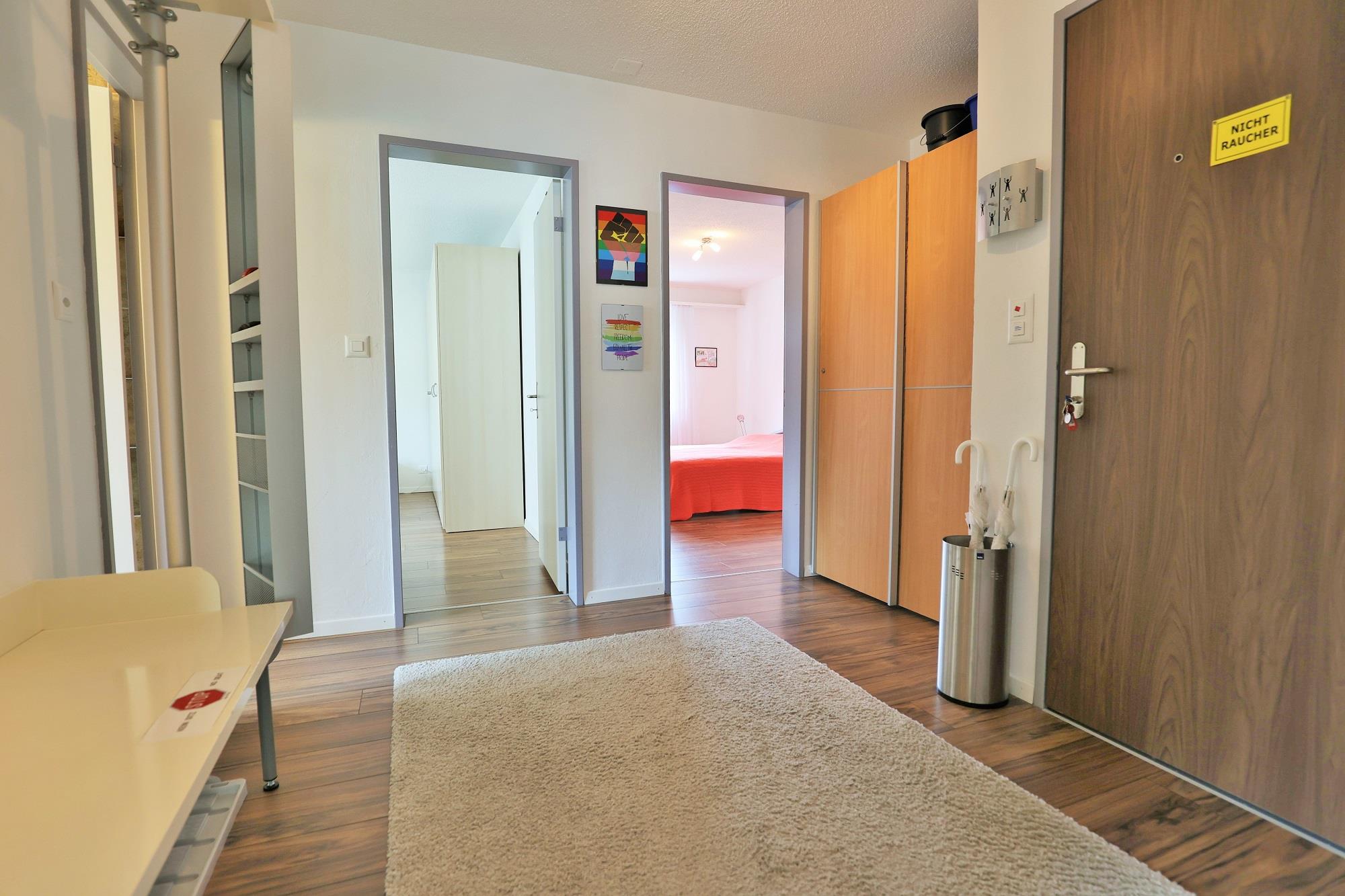 Die ca. 75 m2 grosse Wohnung befindet sich im 1. OG und verfügt über 2 Schlafzimmer mit jeweils einem Doppelbett (je 2 Matratzen). Ein Schlafzimmer verfügt sogar über ein en-suite Badezimmer mit Dusche/WC. Eine weitere Nasszelle bietet Badewanne/WC. Das gemütliche Wohn- und Esszimmer verfügt über eine Polstergruppe, eine Essecke mit Tripp Trapp Kinderstuhl sowie über TV und Radio. Die halboffene Küche ist mit einem 4-Platten-Glaskeramikherd, Backofen, Dunstabzug, Kühlschrank mit Gefrierfach sowie einem Geschirrspüler ausgestattet. Ein Wasserkocher, Toaster, Fondue- und Raclettegerät, sowie eine Kapsel- (Delizio) und eine Filterkaffeemaschine sind ebenfalls vorhanden. Der Balkon ist nach Süd/West ausgerichtet.