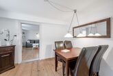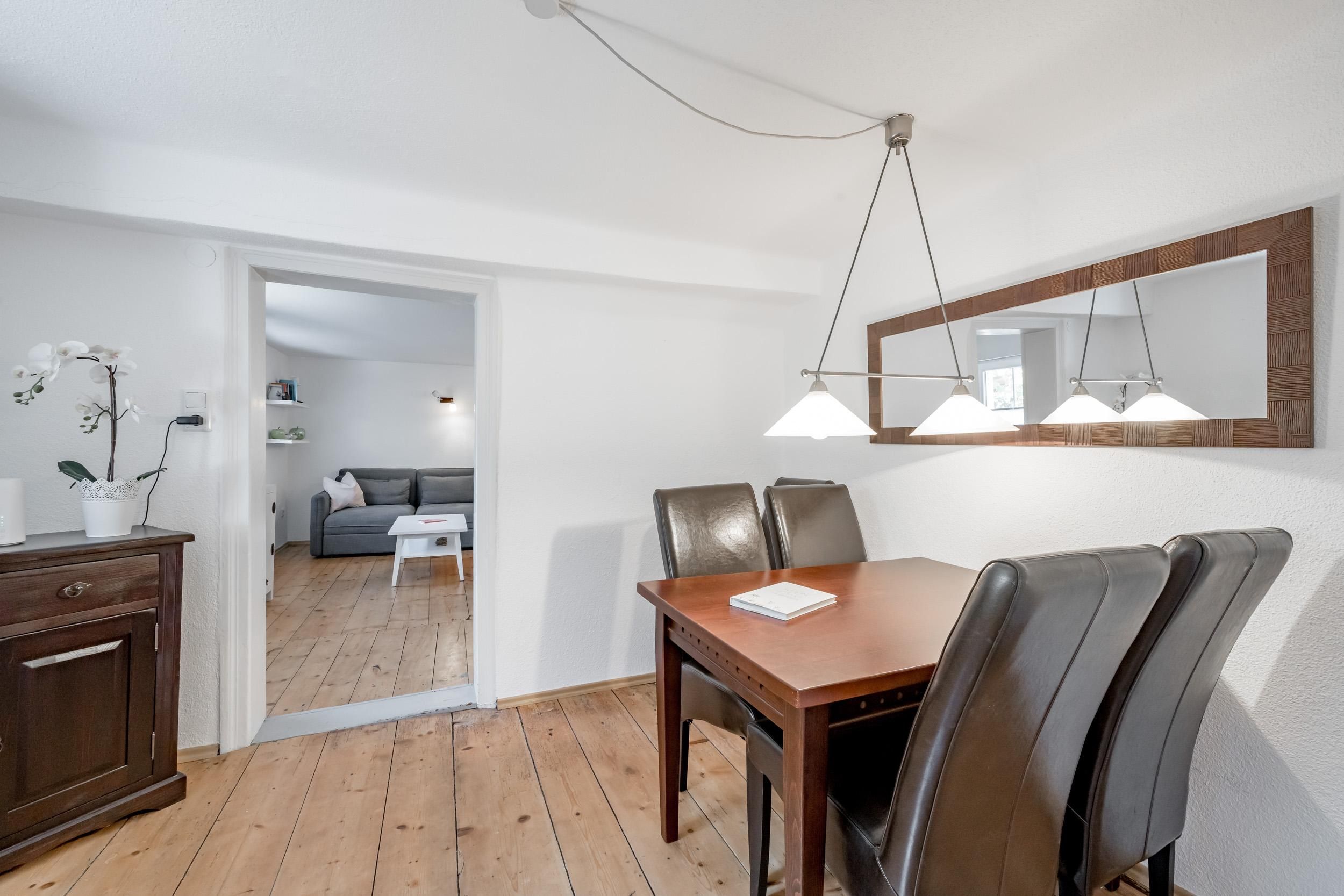 Unser Ferienhaus mit ca. 160 m² bietet Ihnen: im Erdgeschoss 1 vollausgestattete Küche mit Backofen, Elektroherd, Spülmaschine, Kühlschrank, Kaffeemaschine uvm. und eine gemütliche Essecke; 1 Wohnzimmer mit Schlafcouch, TV, Kaminofen; 1 Badezimmer mit Dusche/WC;