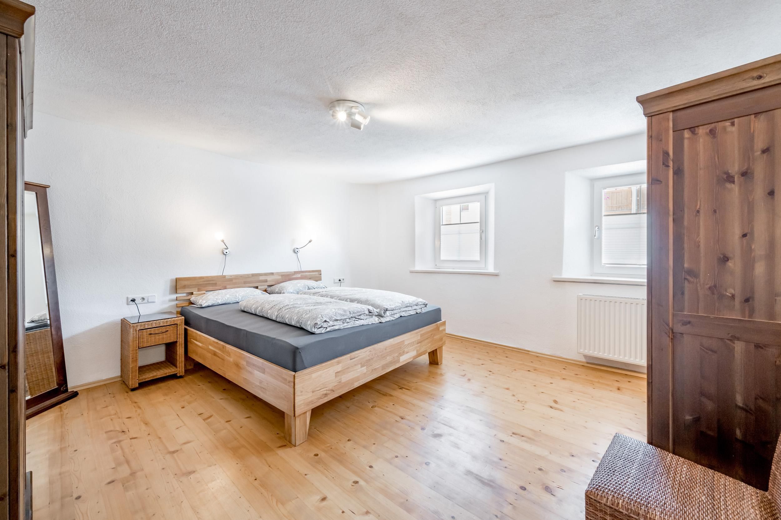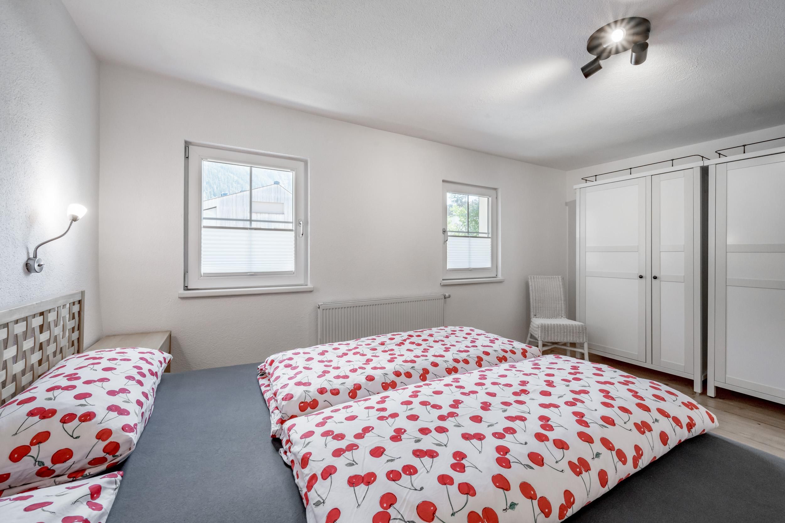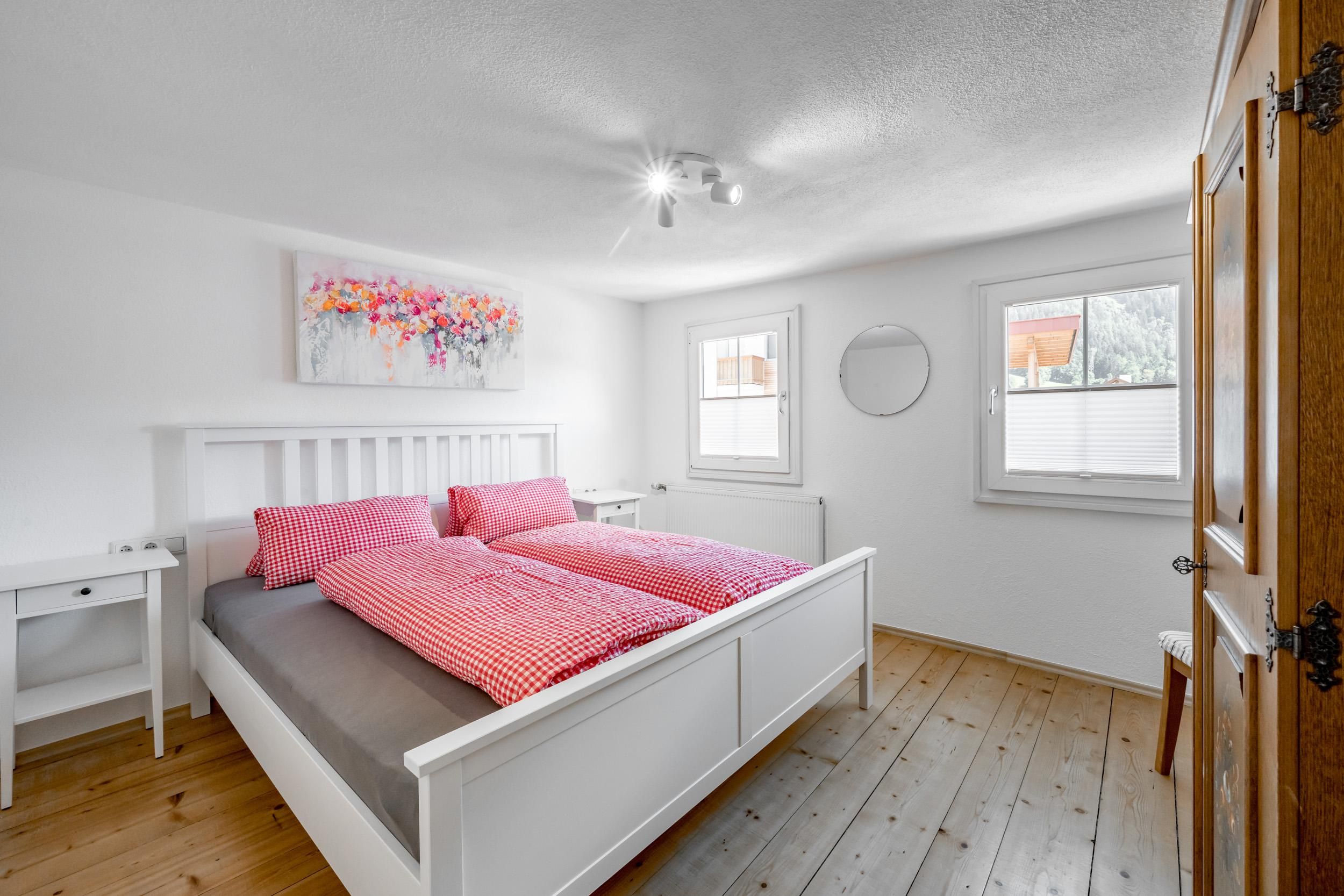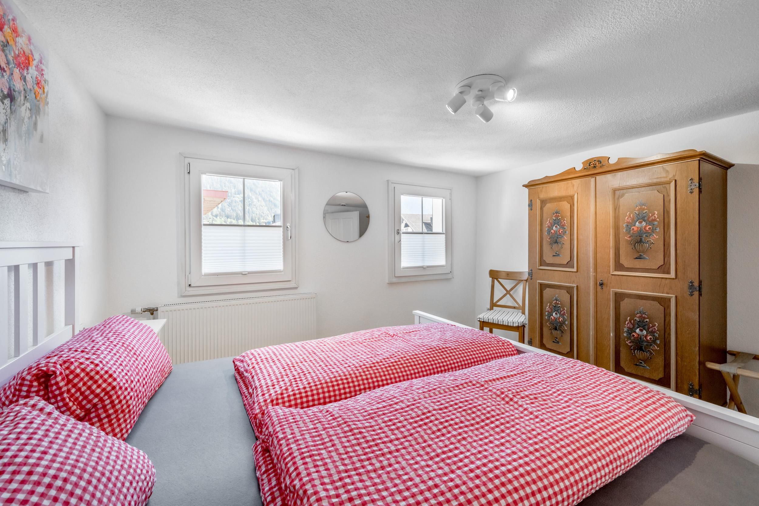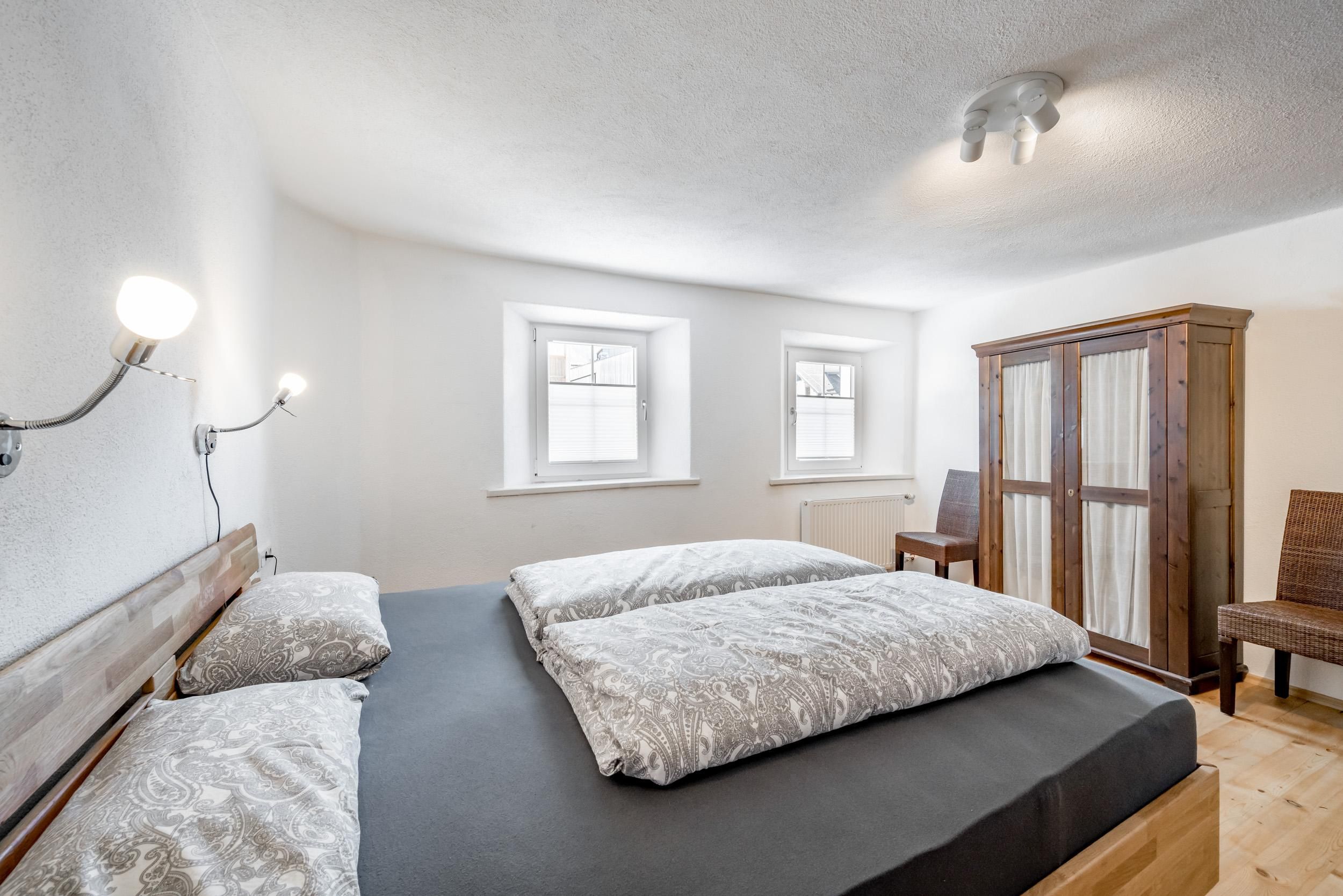 1 Stock: 2 Doppelzimmer; 1 großes, modernes Badezimmer mit einer Doppeldusche/WC; großer, überdachter und möbilierten Balkon mit wunderschöner Aussicht auf die Berge und das Tal; 2. Stock: 1 Doppelzimmer.