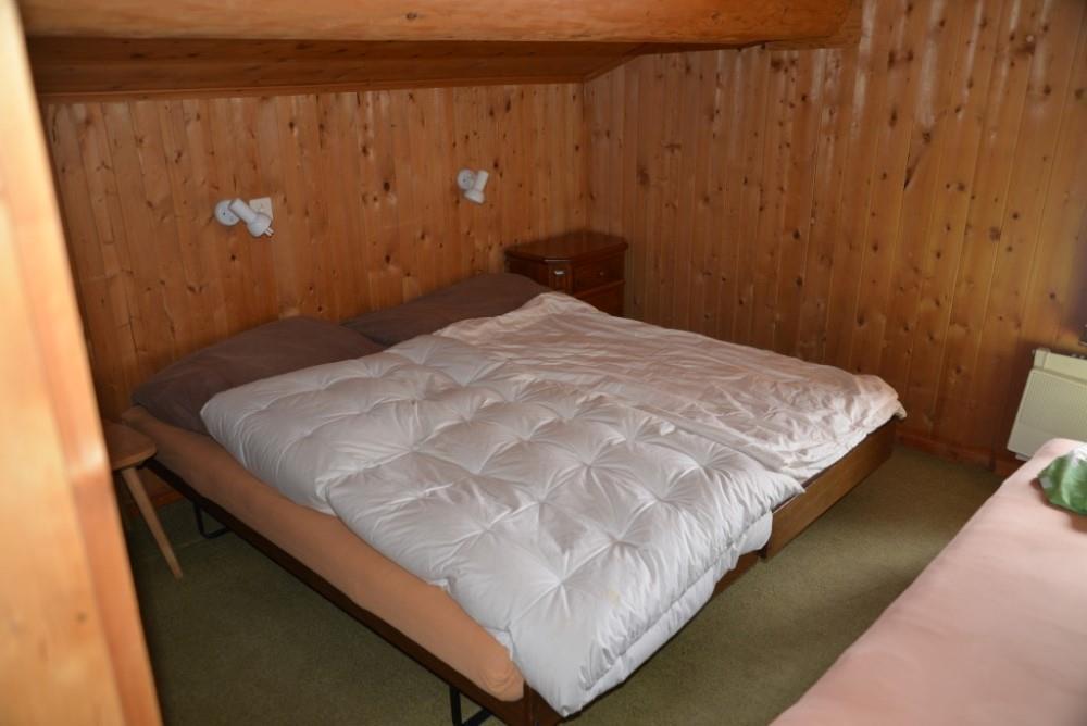 Chalet (75.30 m2) an ruhiger Lage mit Terrasse, Parkplatz, Wohn-Esszimmer (Bettsofa), 1 Schlafzimmer mit 1 Einzelbett, 2 Schlafzimmer mit je 2 Einzelbetten sowie 1 Dreibettzimmer, 1 Kinderbett, Telefon, separate Küche mit Glaskeramik Herd, Specksteinkochherd mit Backofen, Kühlschrank, Chromstahlpfannen, kleiner Stock an Gewürzen und haltbaren Lebensmittel, Dusche/WC; Bettwäsche, Küchentücher, Wolldecken, Duvet Nordisch (Daunen oder Wolle), Kompostierung möglich; WLAN; Nichtraucher-Haus , Haustiere sind nicht erlaubt! Elektrofahrrädern und Elektroautos können gegen Aufpreise geladen werden.