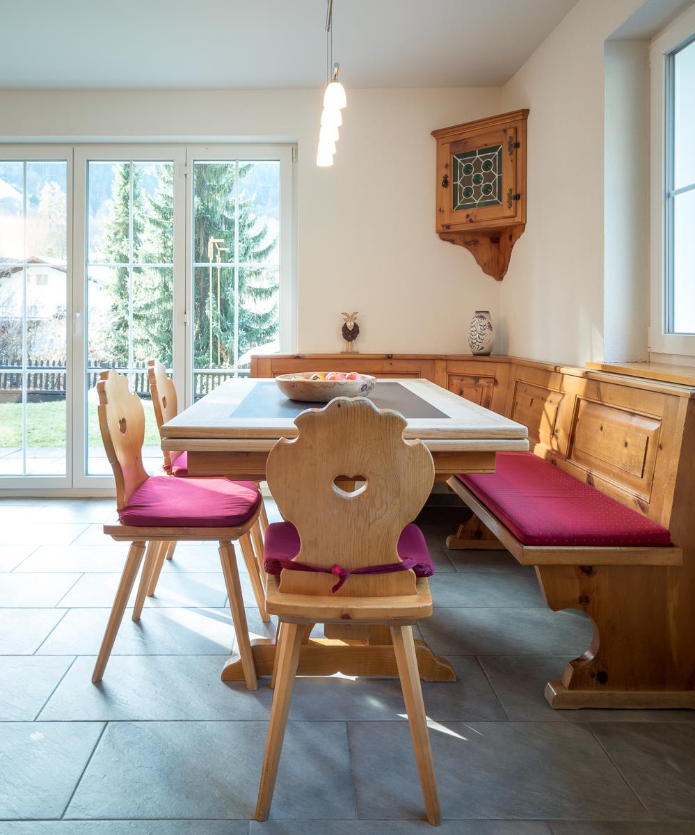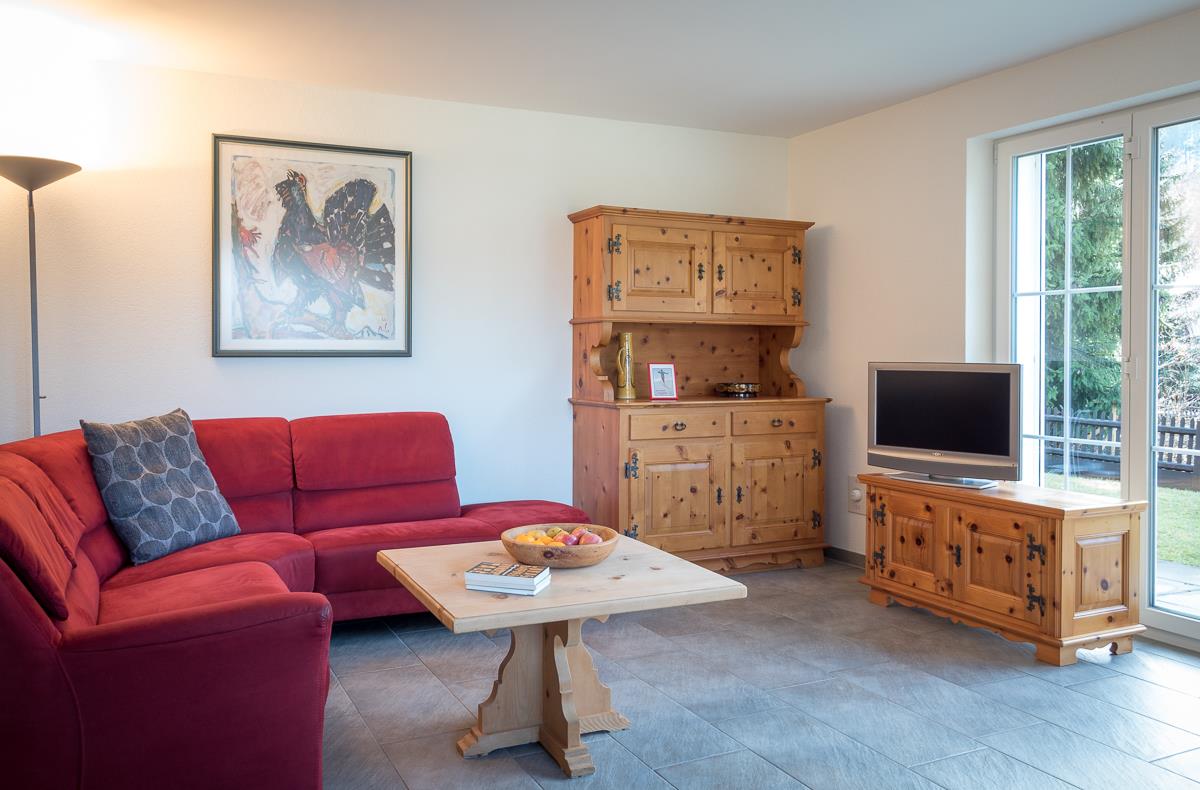 Das geräumige Chalet befindet sich am verkehrsarmen, ruhigen Serneuser Südhang und wird mit Erdwärme beheizt; 3 Schlafzimmer mit Doppelbetten, 1 Schlafzimmer mit 2 Einzelbetten, alle mit Nordischen Duvets ausgestattet, auf Wunsch steht 1 Kinderbett (bis 2 Jahre) zur Verfügung; offene Wohnküche mit Geschirrspüler, Backofen, Glaskeramik-Kochfeld, Kühlschrank mit Gefrierfach, Raclette- und Fondueset, Kaffeemaschine (Filterkaffee), Wasserkocher; Wohn-/Esszimmer mit Flach-TV (über 60 Sender), Radio, Internet (gratis WLAN); eine Nasszelle mit Badewanne/WC und eine mit Dusche/WC; Waschmaschine; der Garten ist zur alleinigen Benützung, Aussengrill; Bettwäsche, Frotteewäsche, Küchentücher; Nichtraucherhaus; Haustiere sind nicht erlaubt; es stehen 3 Parkplätze zur Verfügung, wovon einer gedeckt ist.