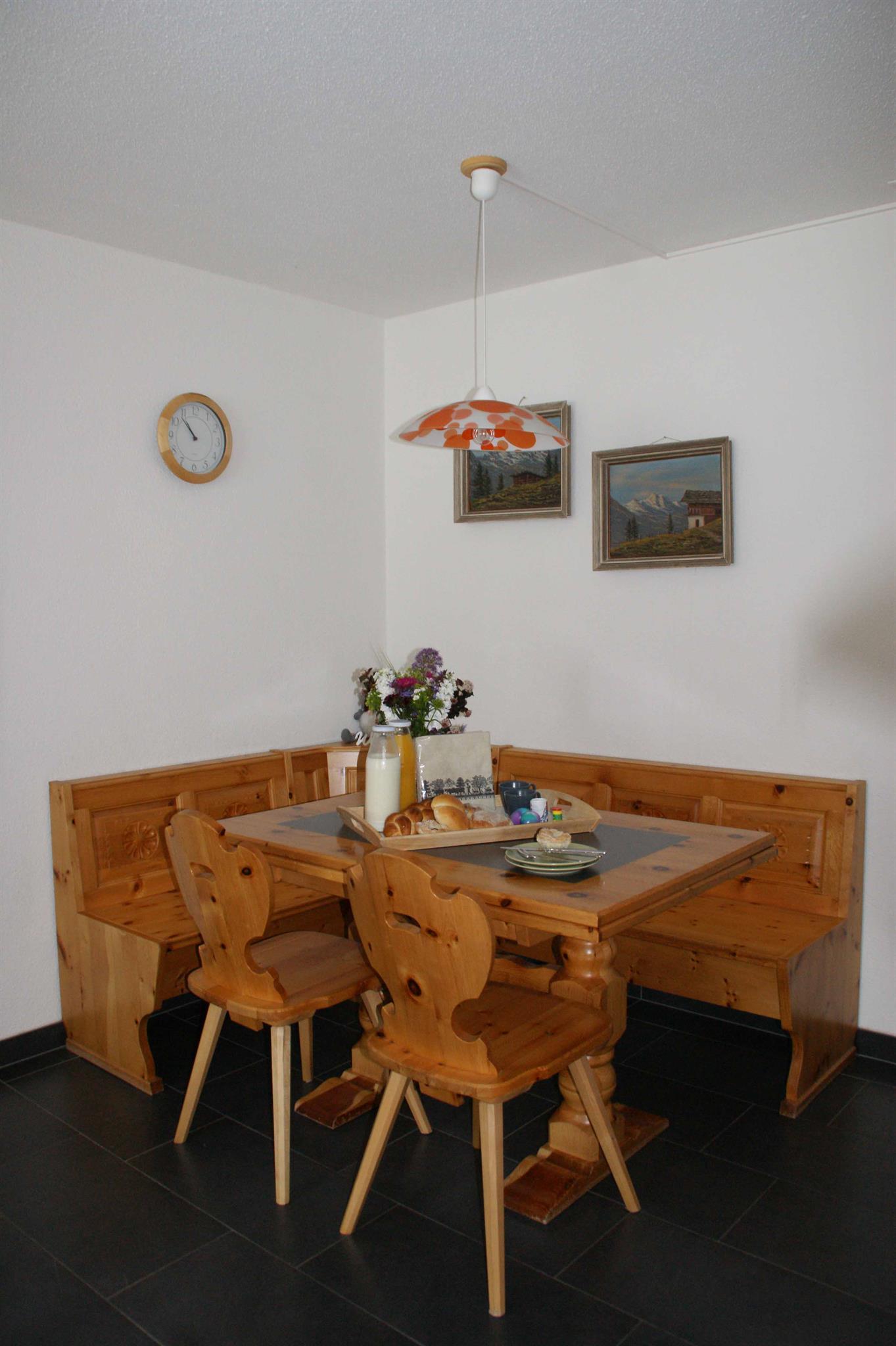 Die Wohnung ist komplett neu renoviert, ist hell, hat viel Platz und verfügt über einen hohen Ausbaustandart. Balkon mit Gartenmöbeln. Das Wohn-Esszimmer ist mit einem Sofa (ausziehbar), einem Salontisch, einem Buffet, einer Kommode, sowie einer Essecke für 4 Personen ausgestattet. Fernseher, Radio/CD-Player und WLAN vorhanden. Schlafzimmer mit einem Doppelbett sowie 1 Etagenbett; separate, moderne Küche mit Glaskeramik, Steamer, grossem Kühlschrank, Abwaschmaschine, Kaffeemaschine, Fondue, Raclette. Badezimmer mit Badewanne und Duschvorrichtung, WC und Lavabo. Eingang mit Garderobenschrank. Die gesamte Wohnung ist mit Plattenboden und Fussbodenheizung. Nordische Duvet, Bett- und Küchenwäsche sind vorhanden. Haustiere sind nicht erlaubt.