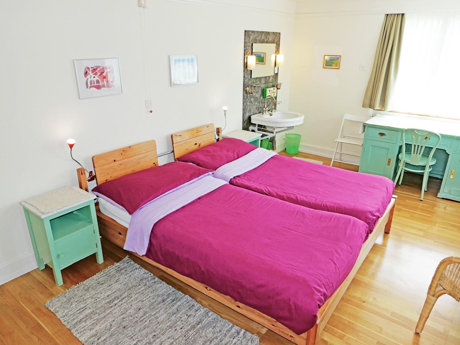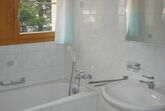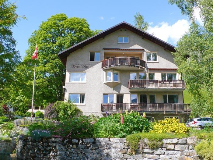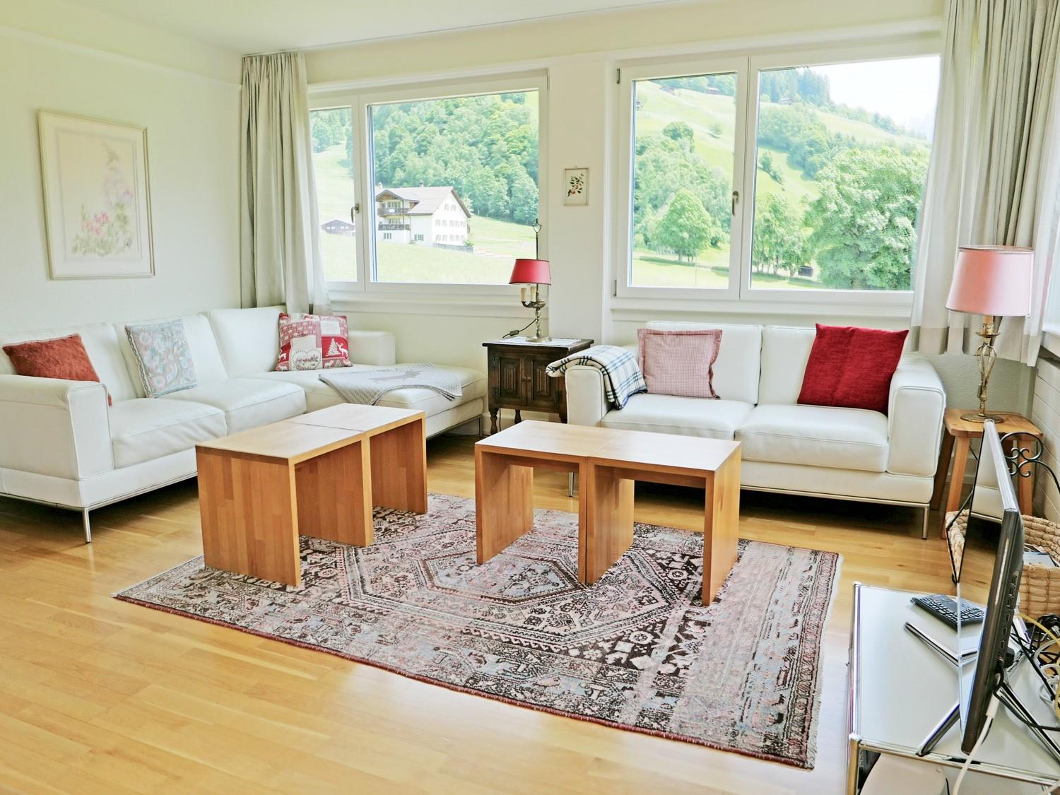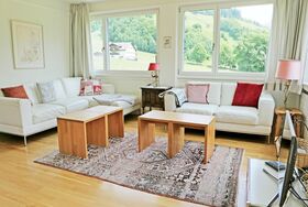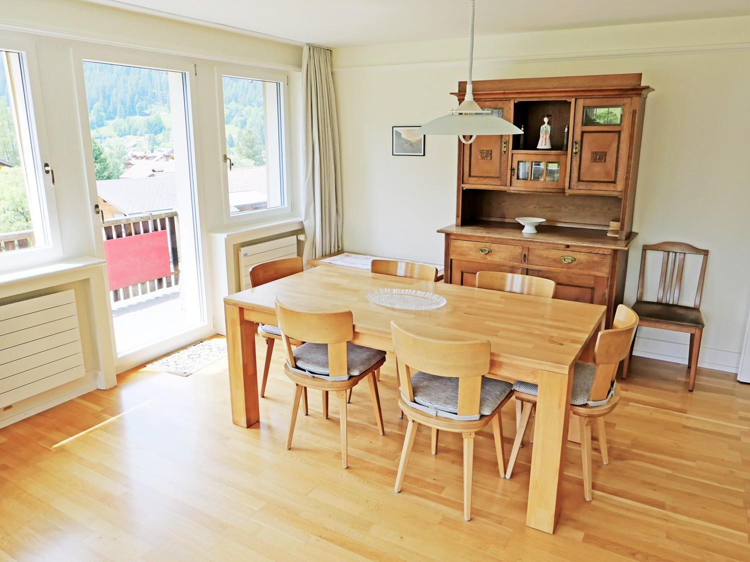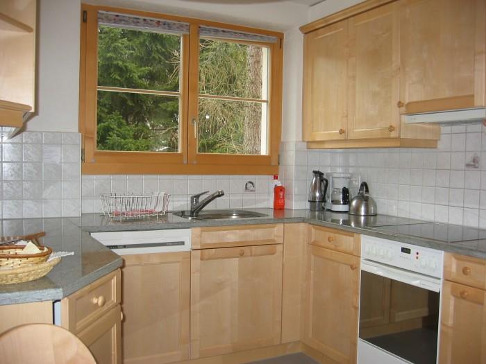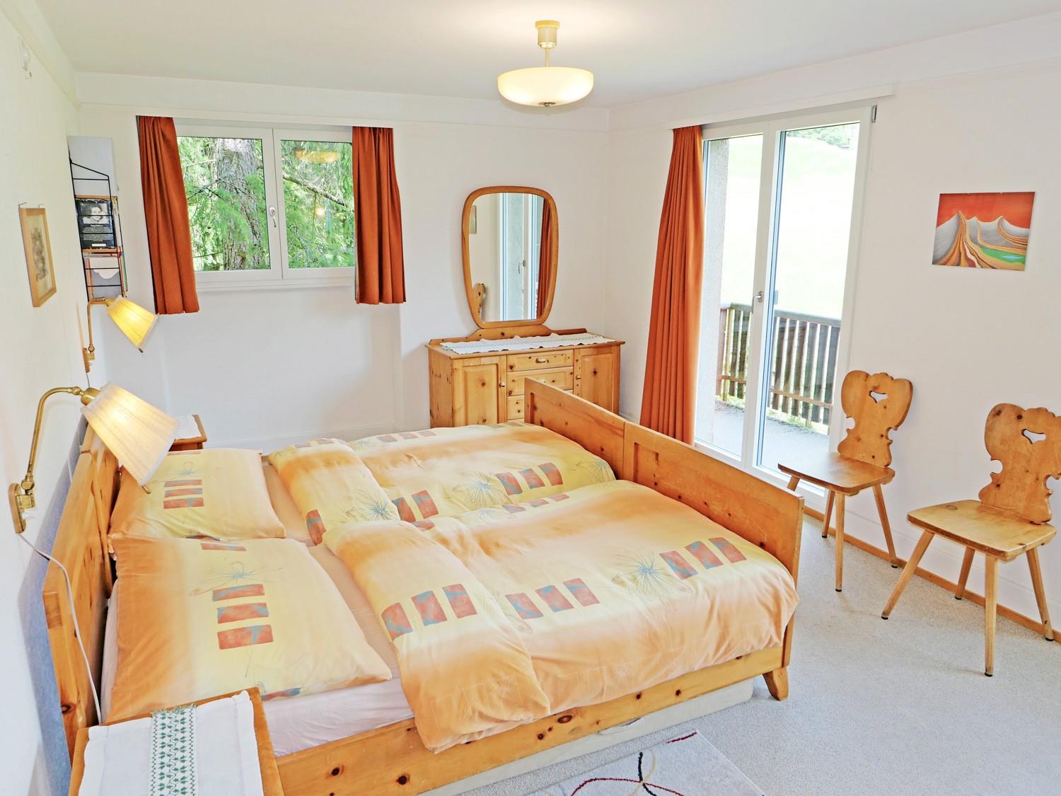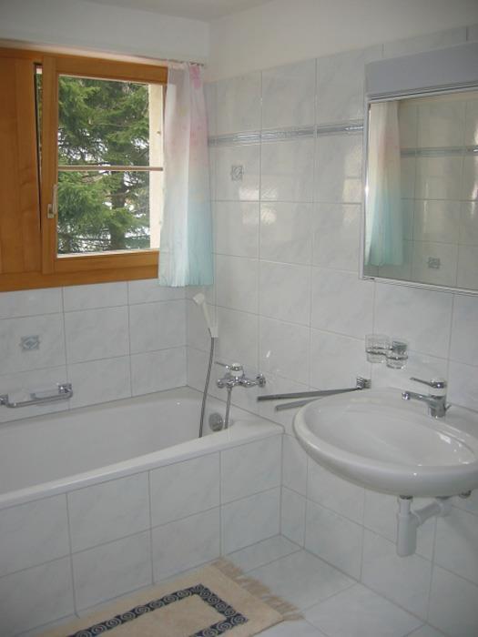4 1/2-Zimmerwohnung (ca.95m2) in einem Mehrfamilienhaus an ruhiger sonniger Lage mit Parkplatz, Garten, Waschmaschine, Skiraum. 1 Wohn-Esszimmer, 3 grosse Schlafzimmer mit je 2 Betten (1 Kinderbett vorhanden), elektrische Küche mit Kühlschrank, Backofen, Geschirrspüler, Kaffeemaschine, Bad/Dusche, WC, Fernseher, Telefon, 2 Balkone. Lavabo in jedem Schlafzimmer, zentralgeheizte Zimmer; Wäsche, Duvet mit Daunen/Nordisch, WC-Papier; Nichtraucherwohnung; Haustiere erlaubt;