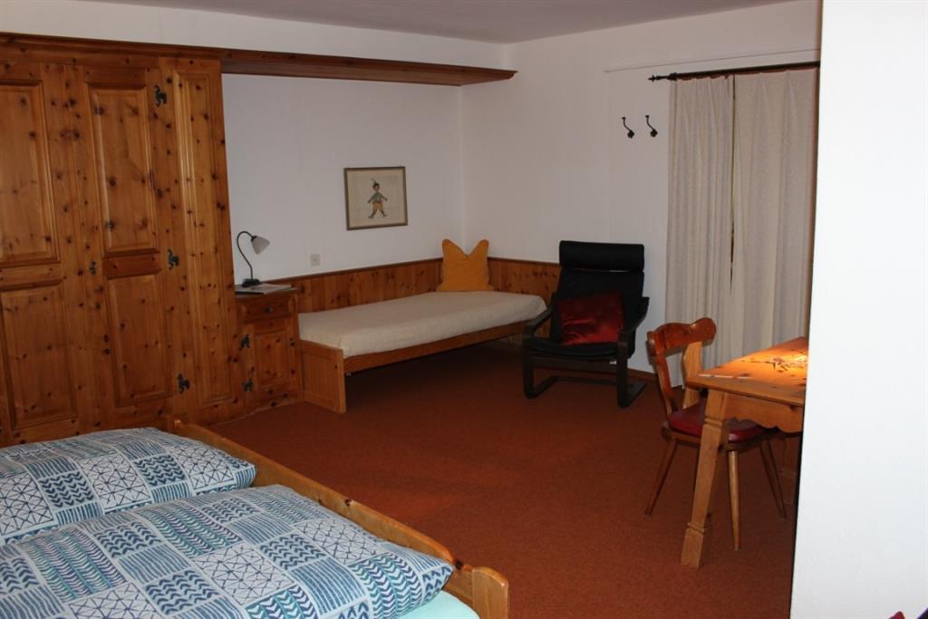 Gemütliche grosse 2 ½ Zimmer Wohnung (ca. 75m2) im OG; Garage, Parkplatz hinter dem Haus; eigene Waschmaschine und Tumbler; grosszügige moderne Küche; Wohnzimmer mit 2-türigem Schrank; Schlafzimmer mit 1-türigem Schrank. Eigener ebenerdiger Hauseingang im Zweifamilienhaus mit Drogeriemarkt im EG. Drei Gehminuten zur Parsennbahn! Geheizte Garage mit direktem Zugang zur Wohnung; Garten/Terrasse; separate Eingangssituation mit Garderobe; moderne Küche mit Induktionsherd, Backofen/Mikrowelle, Geschirrspühlmaschine, Kühlschrank, Kaffeemaschine und gemütlicher Essgelegenheit; Bad/Dusche, separates WC; Schlafzimmer (nordisch/Daune) mit Doppelbett und Einzelbett, Arvenausbau; Kinderbett auf Anfrage; modernes Wohnschlafzimmer mit echtem Sofabett, Sitzgruppe, Salontisch. WiFi, Radio/CD, Swisscom-TV, DVD; nur Nichtraucher; Es ist ausdrücklich untersagt, Foliensprays zur Abdeckung von Flächen zu benutzen! Frühbucher-Rabatt 60 Tage: 5%! Last-Minute-Rabatt 7 Tage: 5% !