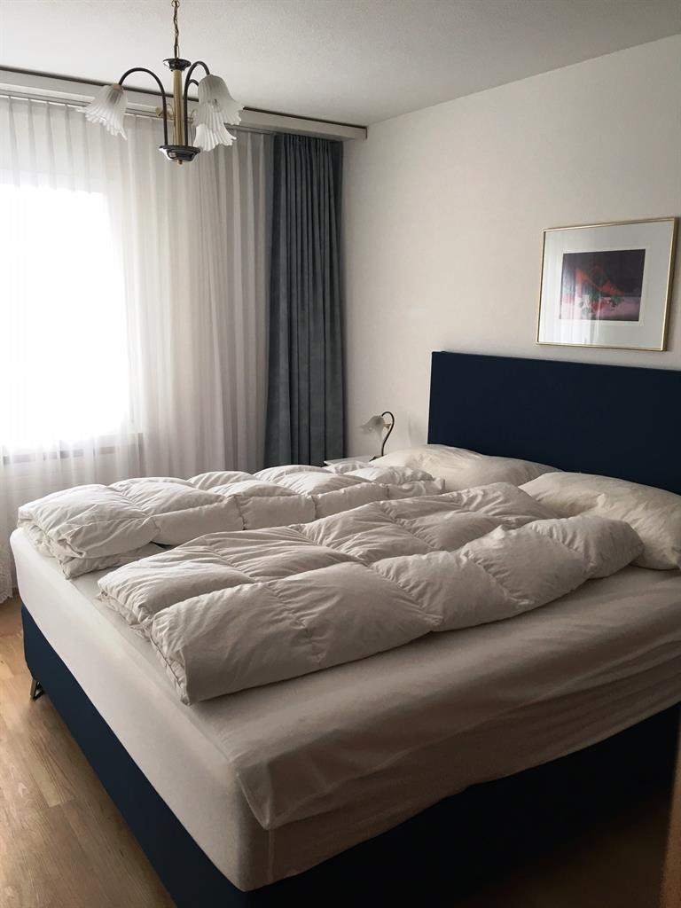 Sehr schöne 3 Zimmerwohnung (ca. 80 m2) im 4. von 5 Stockwerken eines Mehrfamilienhauses mit Lift, zentral am Stadtparkgelegen, in unmittelbarer Nähe vom Sportzentrum/Eisstadium, Kongresszentrum, Hallen- und Freibad sowie Bushaltestelle. Die Wohnung verfügt über einen Balkon mit Fernsicht auf die Berge, Wohn-Esszimmer mit grossem Lederecksofa und einem Hocker, 42 Zoll LCDFernseher, Blueray - DVD Homecinema mit i-Pod Adapter; WLAN; separater Küche mit Induktionsherd, Backofen, Kühlschrank mit Tiefkühlfach, Geschirrspülmaschine, Kaffeemaschine, Fondueset, Toaster; 1 Bad/WC und 1sep. WC; 1 Schlafzimmer mit einem Doppel-Box-Springbett und 1 Schlafzimmer mit zwei Einzelbetten; Bettwäsche, Küchentücher, Frotteewäsche, Duvet nordisch; Radio, Kabel TV; WC-Papier, Abfallsäcke(schwarz) können vor dem Haus in den Container entsorgt werden. Parkplatz in Einstellhalle sowie Aussenparkplatz; Mitbenützung der Waschmaschine und des Skiraums; nur für Nichtraucher; Haustiere nicht erlaubt!