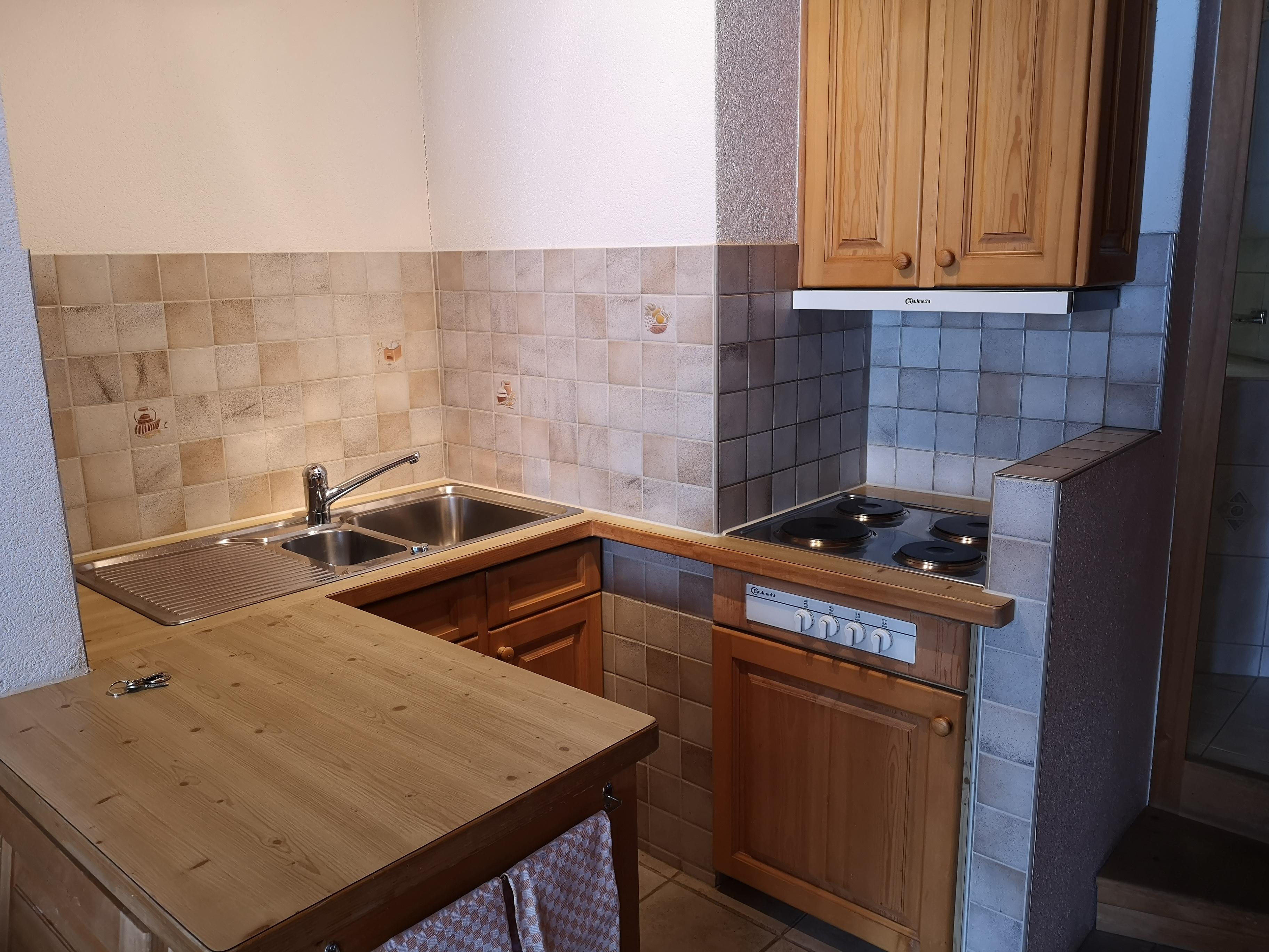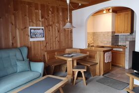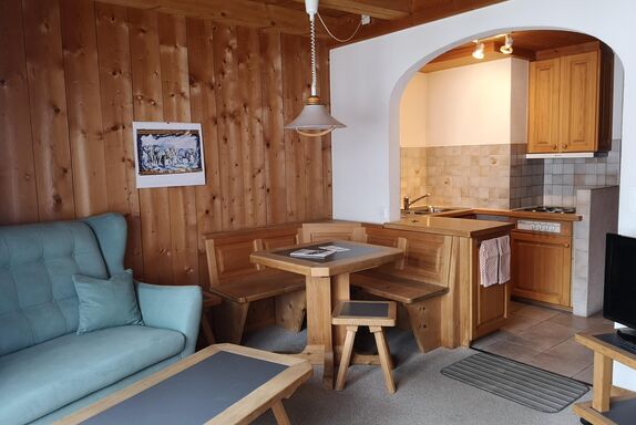 1 Zimmerwohnung im 1. Stock (30m2), ruhige Lage, Einfamilienhaus mit Skiraum, Garten und Waschmaschine (nur auf Anfrage) zur Mitbenützung. Wohnung mit Balkon mit 1 Tisch und 2 Stühlen; sep. Küche (mit Rundbogen zum Wohnschlafzimmer) mit 4 Platten-Herd (kein Backofen), Kühlschrank; DU/WC; 1 Wohnschlafzimmer mit 1 Doppelbett und 1 Couchbett, Clubtisch, Kleiderschrank; Bettwäsche, Küchentücher, Frotteewäsche, Duvet mit Daunen nordisch, Telefon, Radio, TV, Abfallsack blau (1 Stück), WC- Papier (1 Rolle). Haustiere sind nicht erlaubt!