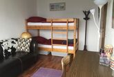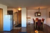 Im Inneren der Wohnung finden Sie die perfekte Fusion von Funktionalität und Komfort. Das Schlafzimmer ist so konzipiert, dass es vollständig abgedunkelt werden kann, um einen erholsamen Schlaf zu garantieren, ergänzt durch einen Fernseher für gemütliche Abendunterhaltung. Die Wohnräume sind mit einem einladenden Esstisch mit Platz für sechs Personen und einem praktischen Einbauschrank ausgestattet, um all Ihre persönlichen Gegenstände ordentlich aufzubewahren. Eine Gemeinschaftswaschmaschine und ein Trockner im Gebäude stehen ebenfalls zu Ihrer Verfügung und runden die durchdachte Ausstattung ab.
