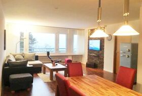 Entdecken Sie die idyllische Ruhe und die natürliche Schönheit von Flums von unserer gemütlichen Ferienwohnung im 5. Obergeschoss aus. Ideal für eine Familie oder eine kleine Gruppe von bis zu 5 Personen, bietet diese Unterkunft den perfekten Rückzugsort für Liebhaber der Berge und des aktiven Lebensstils. Nach ihrer vollständigen Renovierung im Jahr 2017 besticht die Wohnung durch eine vollausgestattete Küche mit hochwertigen Geräten wie einem JURA-Kaffeevollautomaten, Raclette- und Fondue-Gerät sowie zahlreichen anderen Annehmlichkeiten, die Ihren Aufenthalt komfortabel und unvergesslich machen.