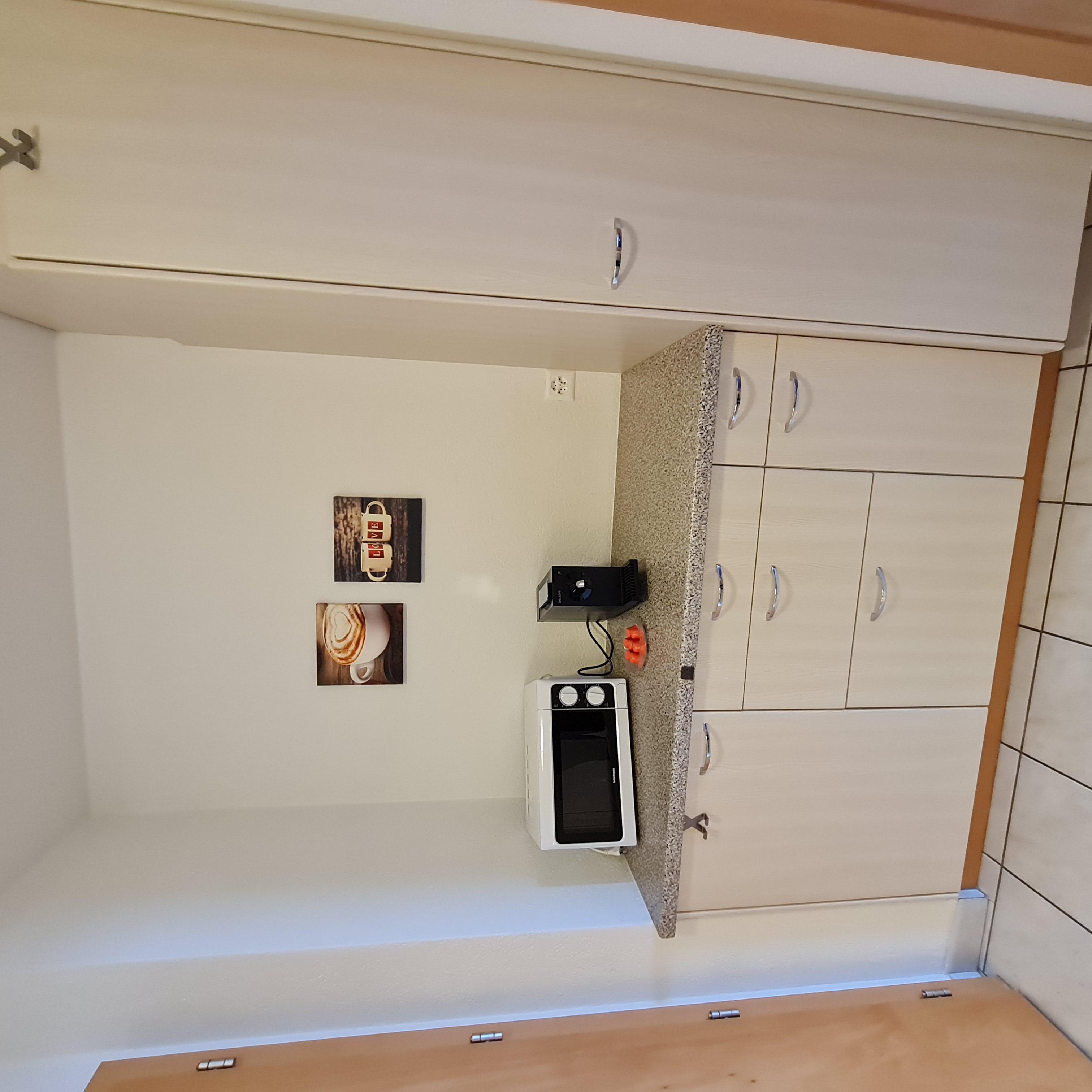 Wohn- und Schlafraum. Essecke. Dusche/WC.
