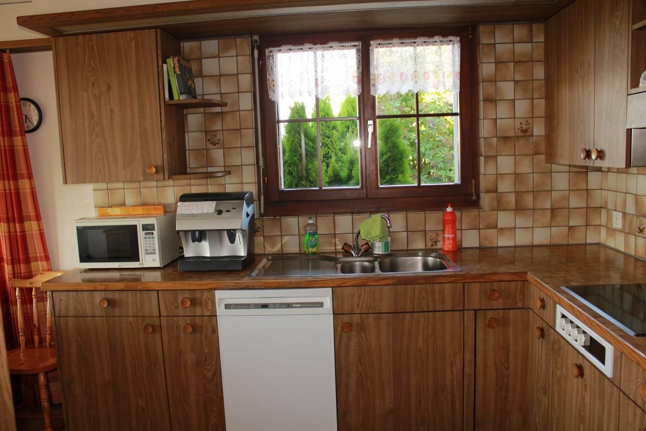 Die 4.5-Zimmer-Wohnung «Diwa» im 1. Stock des Stöcklis mit zwei Vierbett- und einem Zweibett-Zimmer und einem Wohnzimmer mit zwei Schlafgelegenheiten, mit grosser Wohnküche, Dusche/WC und Bad/WC, WLAN. 1 Baby-Bett vorhanden. Waschküchenbenützung, eigener Sitzplatz und Balkon.