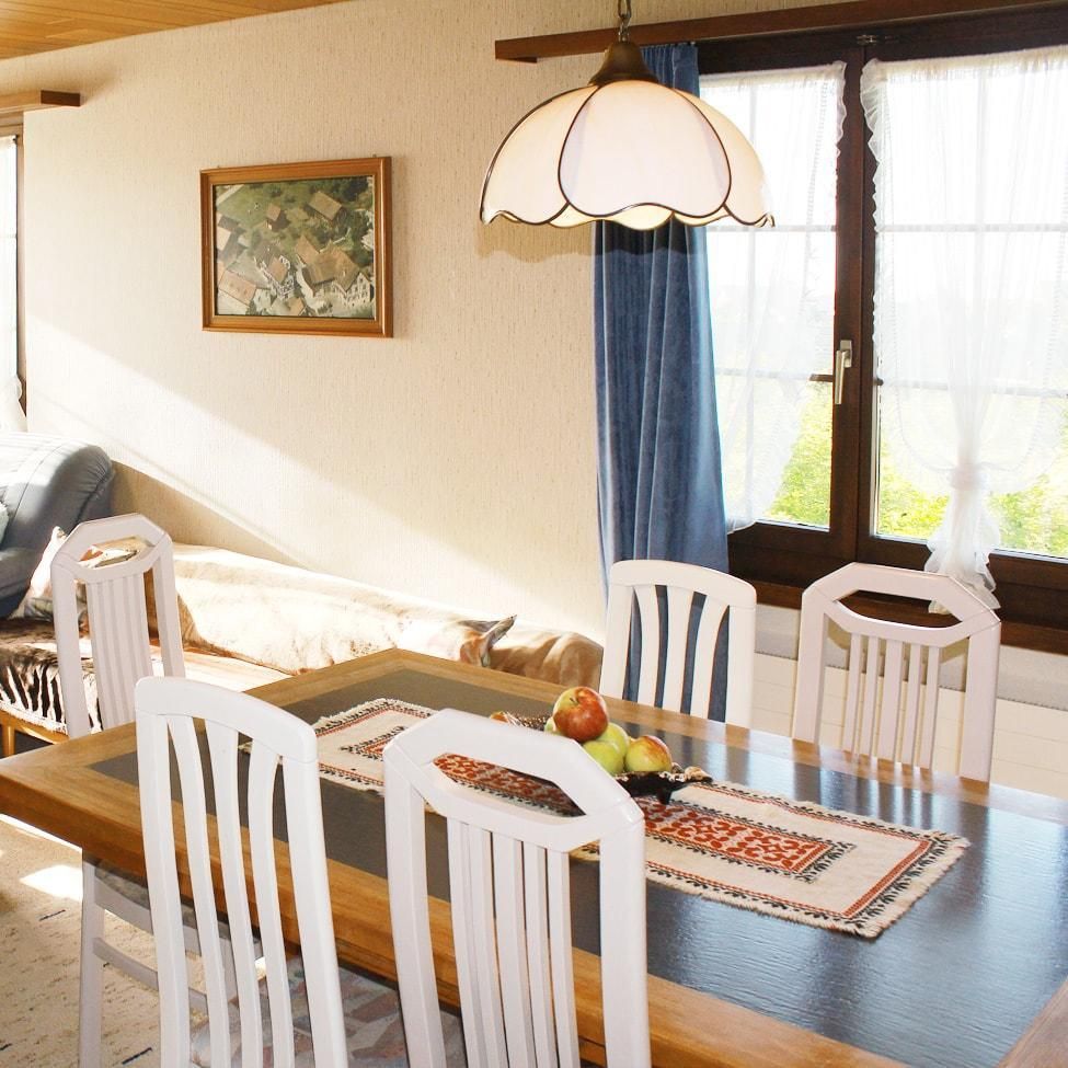 Der gepflegte Bodenseestrand (Segelschule, Badeplatz) ist 2 km entfernt. Für Kinder ist Ponyreiten möglich und verschiedene Kleintiere wie Ziegen, Hühner, Enten, Gänse, Katzen und unser Hund Felix freuen sich auf Streicheleinheiten. In unserem Hofladen finden Sie Produkte vom Hof und aus der Region. Unsere Kaffeeecke beim Hofladen lädt zum Verweilen ein. Ein grosser Spielplatz für unsere kleinen Gäste und viel Platz zum Sein. Optional kann ein Frühstückskorb dazugebucht werden. Für die Endreinigung wird max. CHF 250.00 erhoben (variabel, je nach Aufenthaltsdauer und Personenanzahl).