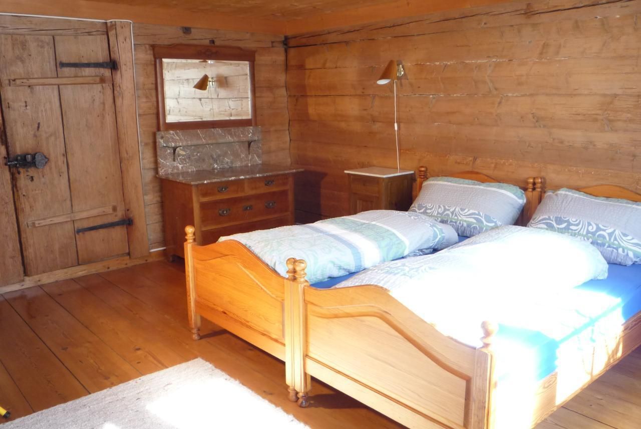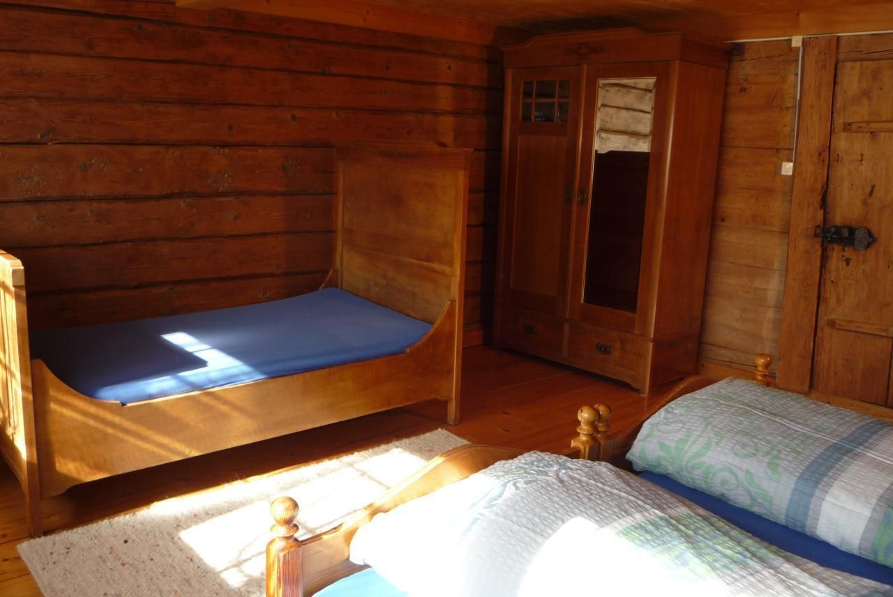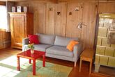 Die Innenausstattung der etwa 100 Meter vom Bauernhof entfernt liegenden Ferienwohnung bietet alle Annehmlichkeiten, die man sich für einen entspannten Urlaub wünscht. Im Erdgeschoss finden Sie ein gemütliches Wohnzimmer mit einem heimeligen Kachelofen und einer Wohnküche, ausgestattet mit Geschirrspüler, Kühlschrank inklusive Tiefkühlfächern, Kaffeefiltermaschine sowie einem Kochherd mit Backofen. Ein separates WC ist ebenfalls im Erdgeschoss vorhanden. Der 1. Stock beherbergt ein Doppelzimmer mit zusätzlichem Einzelbett und einem Bad/WC, während der 2. Stock zwei Zweierzimmer und eine großzügige Wohndiele umfasst. Die Wohndiele kann auch als Arbeitsplatz genutzt werden. Für Familien mit Kleinkindern sind ein Kindertischsitz und ein Treppenabsperrgitter in der Wohnung verfügbar.