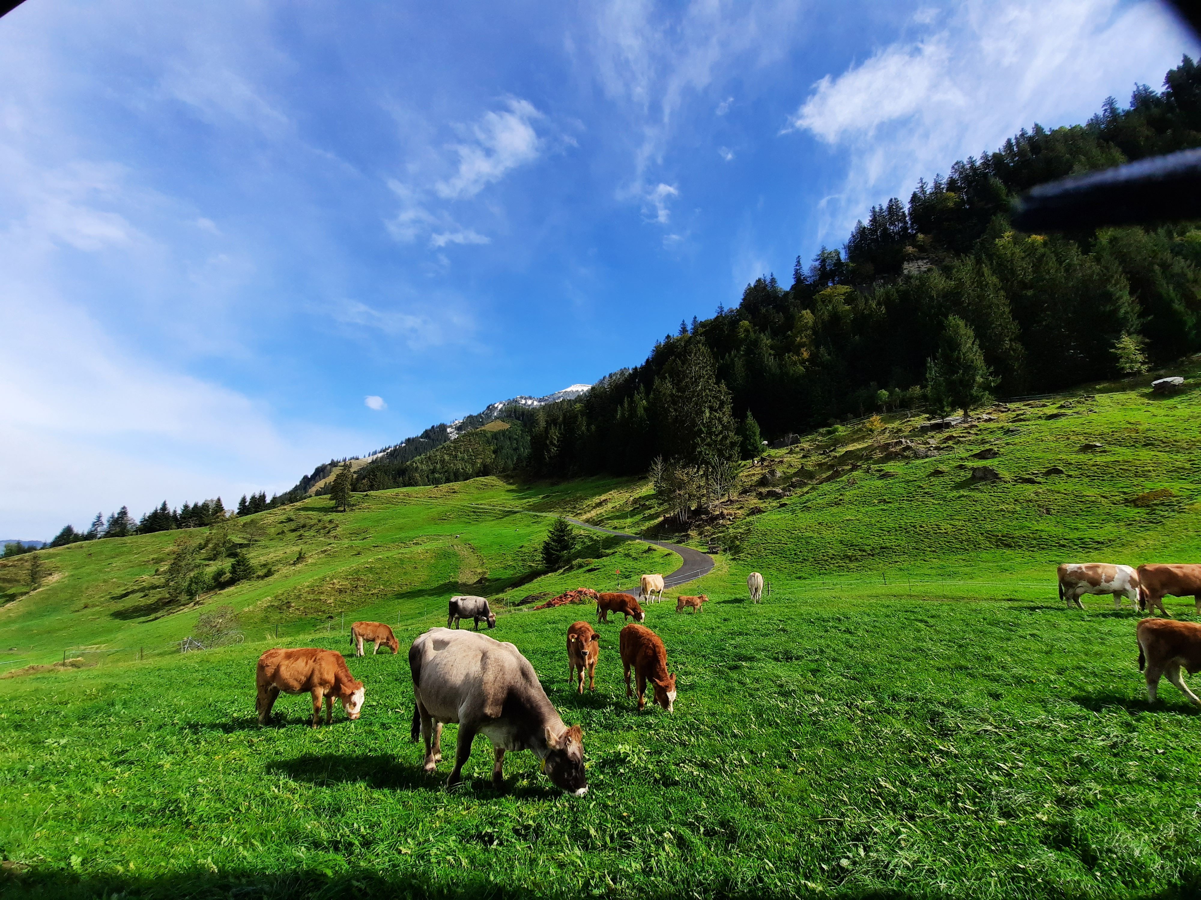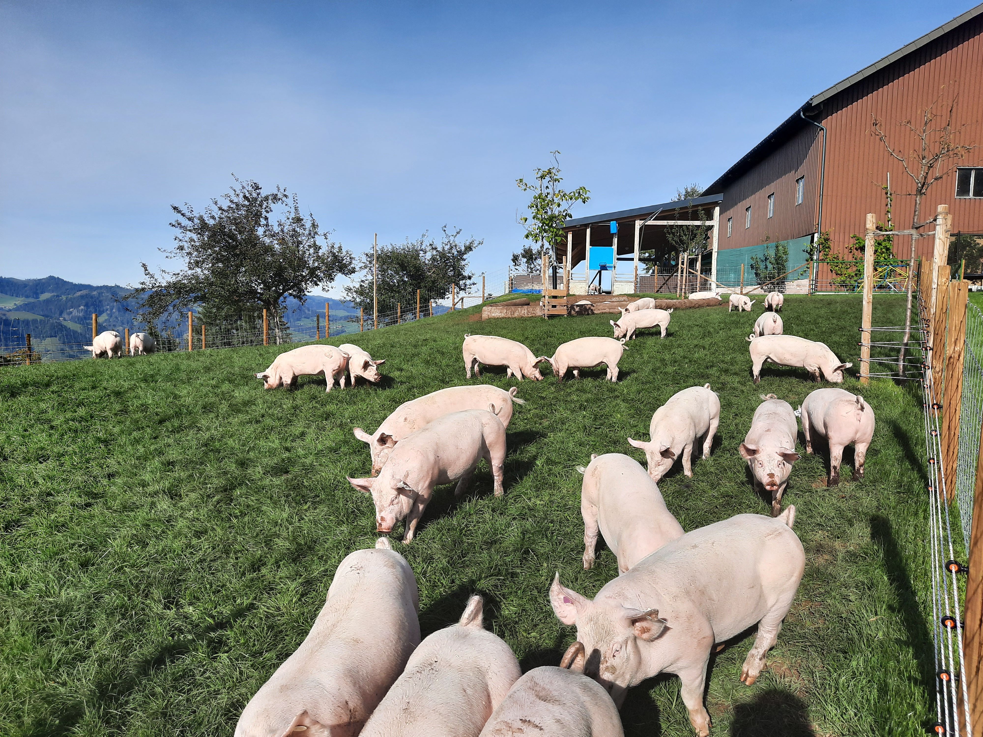 Auf unserem Hof haben wir Mutterkühe, Milchkühe, Rinder, Kälber, Katzen, Ziegen, Hühner und Schweine.
