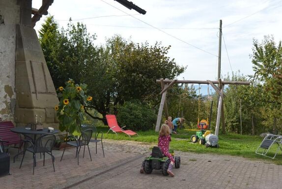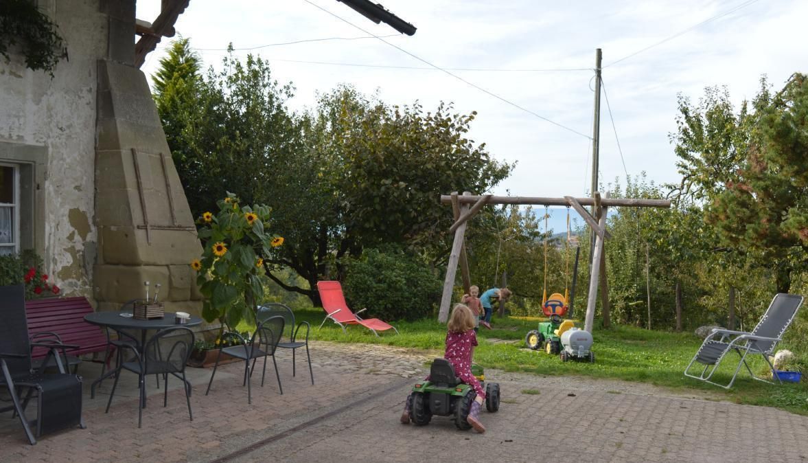 Der Außenbereich unseres Hofes ist ein wahres Paradies für Naturliebhaber und aktive Gäste. Umgeben von Hochstammbäumen und der malerischen Landschaft des Ackerbaus und der Milchwirtschaft, bietet unser Hof unzählige Möglichkeiten, das Bauernhofleben hautnah zu erleben. Gäste sind herzlich eingeladen, bei der täglichen Stallarbeit zu helfen, die Tiere zu füttern oder einfach die Ruhe und Schönheit der Natur rund um den Hof zu genießen.