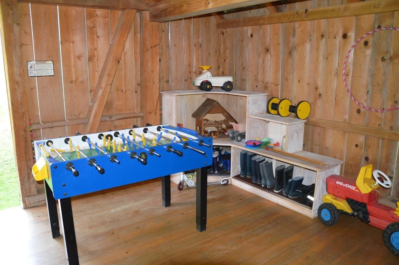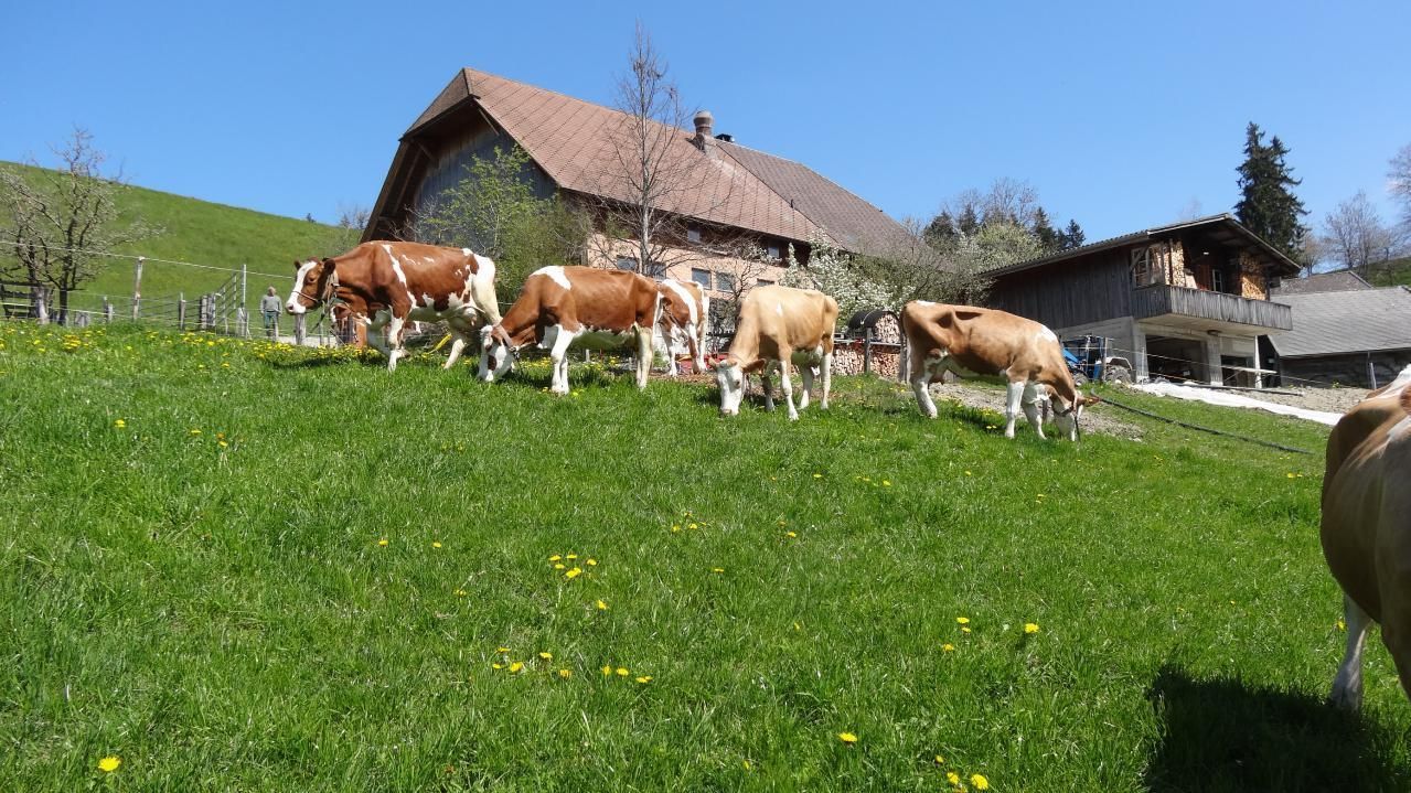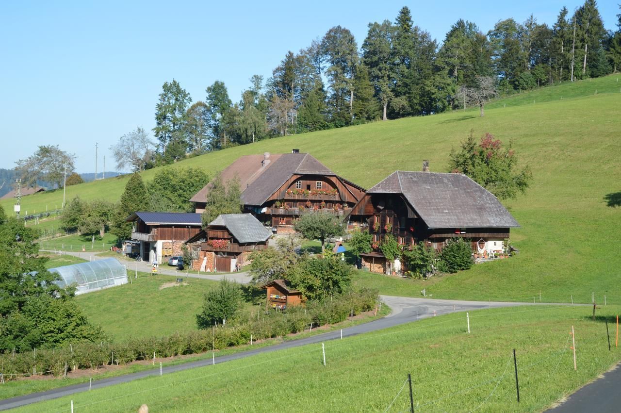 In unserem hundertjährigen Stöckli vermieten wir im 1. Stock eine heimelige 31/2-Zi.-Wohnung mit Wohnküche, einem Doppelschlafzimmer, einem Dreierzimmer mit Kajütenbett und einem Wohnzimmer mit Bettsofa. Kombiherd Holz/Elektro, Sitzofen, eigene Waschmaschine, TV und Internetzugang. Unser Hof liegt auf 920 m ü. M. im Emmental, umgeben von Bach, Wiesen und Wald. Neben der Rinder- und Kleintierhaltung produzieren wir Beeren und beteiligen uns mit Gemüse am Wochenmarkt in Signau. Geniessen Sie unsere vielfältigen Produkte frisch vom Hof.Für Kinder gibt es unzählige Spielmöglichkeiten auf dem Bauernhof. Die ganze Familie ist herzlich willkommen beim Füttern der Tiere oder bei der Ernte mitzuhelfen.Zum Wandern und Velo fahren laden die schönen Wanderwege und Velorouten (z.B. Herzroute) ein. Es besteht auch die Möglichkeit in Signau beim Bahnhof Velos und E-Bikes günstig zu mieten.Wer Ruhe und Erholung in der Natur sucht oder einen Einblick ins Landleben erhalten möchte, ist bei uns genau richtig! Angebote und Mithilfe auf dem Hof: