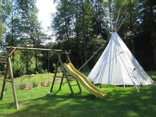 Im Außenbereich bietet unser Hof vielfältige Freizeitmöglichkeiten. Ein direkt am Haus vorbeifließender Bach lädt zum entspannten Bootfahren ein. Für Familien mit Kindern sind ein Spielplatz, Spielzeug, ein Schwimmbecken, und Möglichkeiten zum Grillen vorhanden, die den Aufenthalt zu einem besonderen Erlebnis für die ganze Familie machen. Unsere zwei Esel, neben anderen Tieren wie Milchkühen, Kälbern, Hunden, Katzen, Gänse, Hühnern und Kaninchen, warten darauf, von Ihnen besucht zu werden.