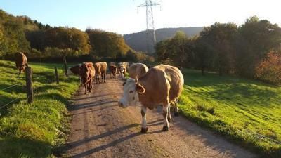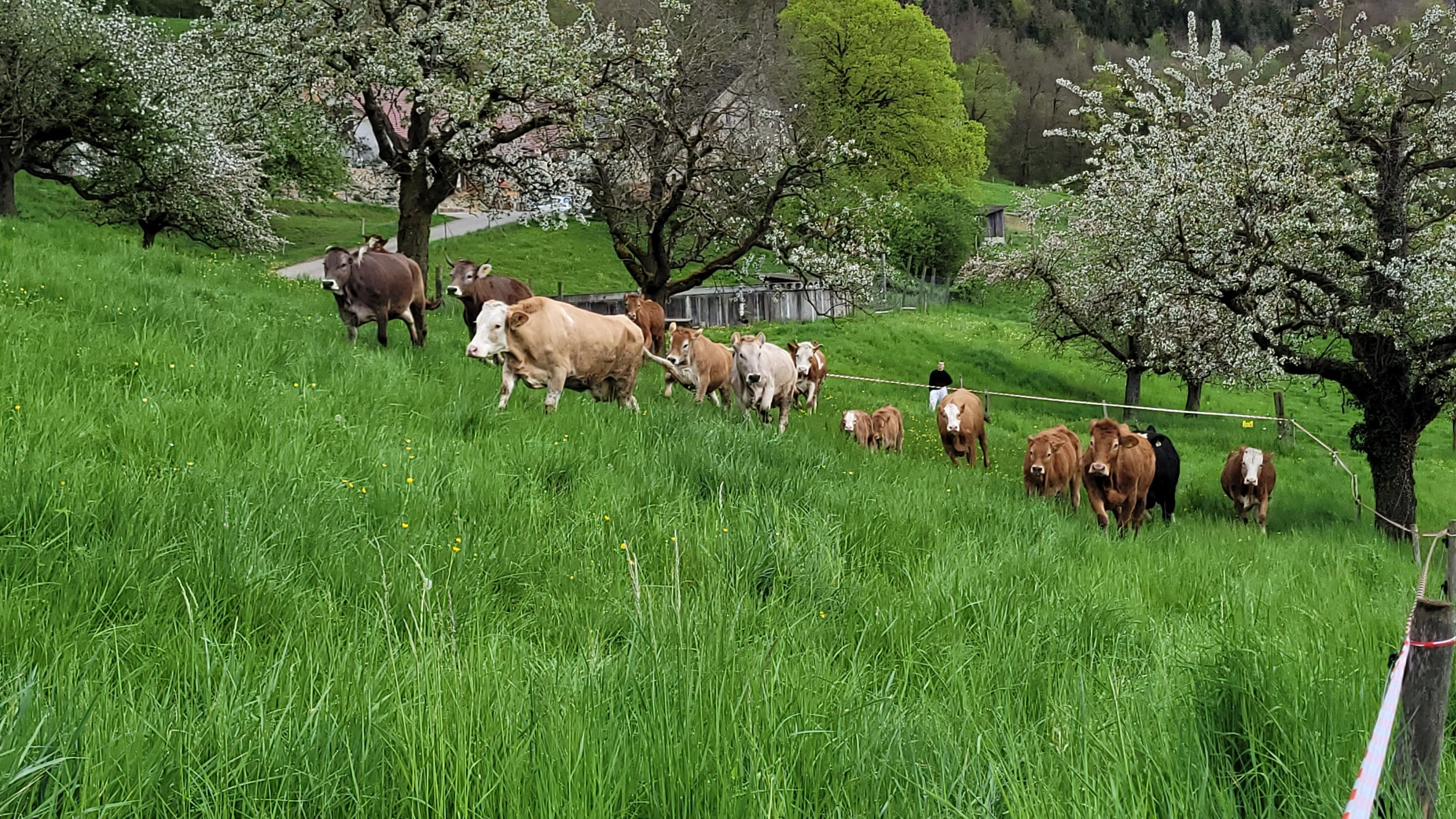 Es darf auch gerne im Kuhstall mit angepackt werden. Der Mutterkuhstall und die beiden Schweineställe sind ca. 80 bis 100 Meter vom Chalet entfernt. So erleben Sie unsere Tiere und die Natur hautnah.