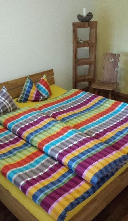 Die Ferienwohnung befindet sich im Parterre unseres liebevoll gepflegten Bauernhauses und ist mit allem ausgestattet, was Sie für einen entspannten Aufenthalt benötigen. Die Räumlichkeiten umfassen einen großzügigen, offenen Wohnbereich mit einer gemütlichen Sitzecke und einer voll ausgestatteten Küche für gemeinsame Mahlzeiten. Zwei abdunkelbare Schlafzimmer bieten privaten Rückzugsort, jeweils perfekt eingerichtet für einen erholsamen Schlaf - das Elternschlafzimmer mit einem bequemen Doppelbett und ein Kinderzimmer mit zwei oder drei Einzelbetten. Ein modern ausgestattetes Badezimmer mit Dusche und Badewanne ergänzt die Wohneinheit, gestaltet, um Ihren Aufenthalt so komfortabel wie möglich zu machen.
