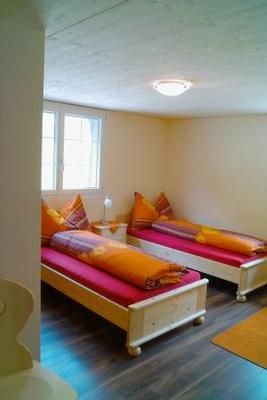 In unserem rollstuhlgängigen Gästehaus mit Treppenlift vermieten wir eine 5½-Zimmer-Ferienwohnung mit 9 Betten, davon 3 Pflegebetten. Zusätzliche 3 Doppelzimmer mit Dusche / WC / TV auf Anfrage. Das Haus eignet sich auch als Gruppenunterkunft oder für Seminare. Der Aufenthaltsraum mit kleiner Küche und Terrasse bietet Platz für 16 Personen. Wir bieten auch B&B an.