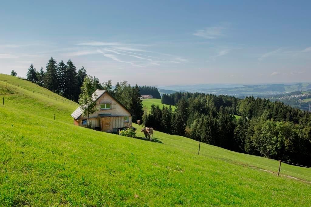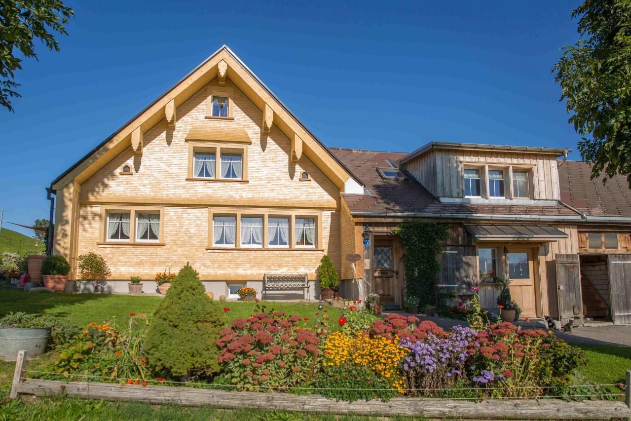 Unser Bauernhof Fendrig liegt auf dem Hügelzug Leimensteig nördlich von Appenzell und ermöglicht einen Rundblick über den Alpstein, den Vorarlberg bis weit ins Tal. Die vielen Tieren, der Spielplatz, die Wandermöglichkeiten, die Bikerouten machen den Aufenthalt zum Erlebnis für alle. Ruhig gelegen, das heimelige Restaurant 80m in der Nähn,10 km von St. Gallen, 6 km von Appenzell, 3 km von Haslen.