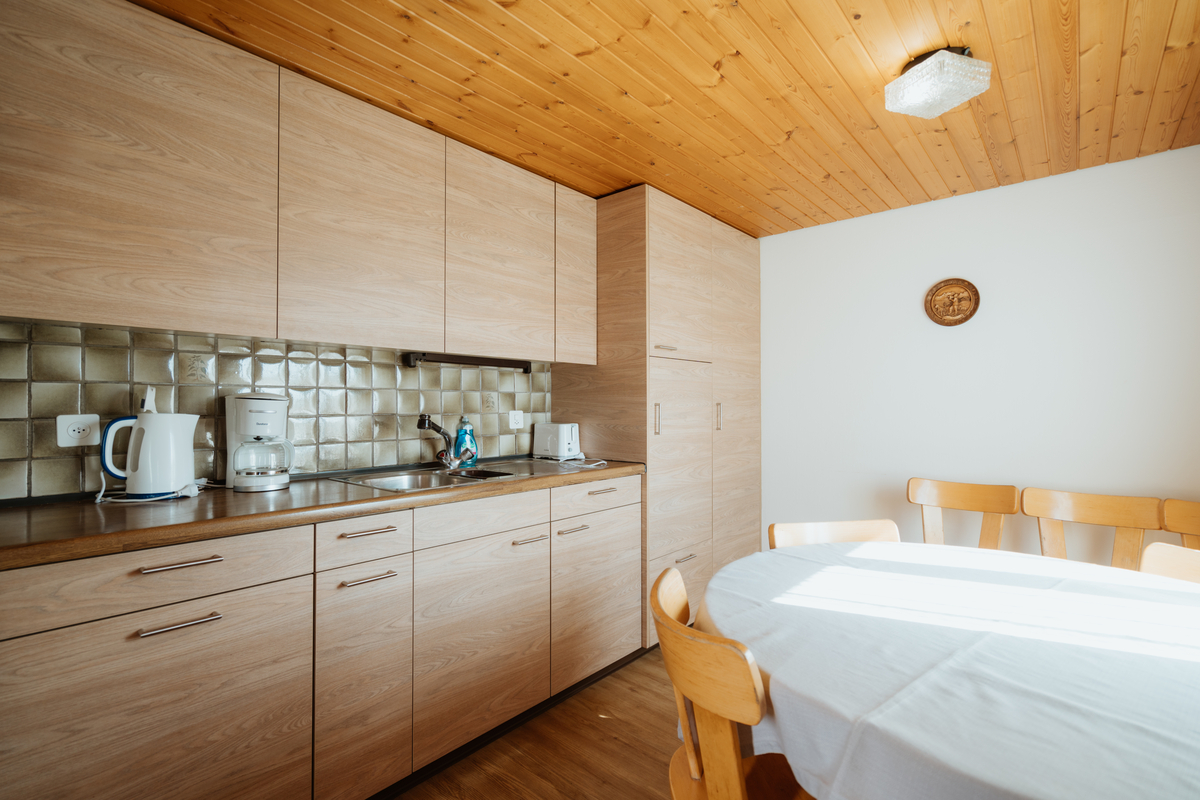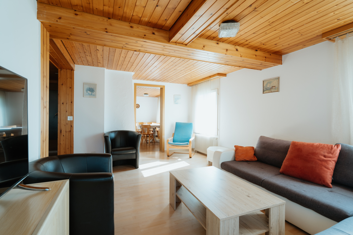 Die gut ausgestattete Wohnung bietet Platz für 5 Personen. Das geräumige Wohnzimmer mit TV bildet das Herzstück der Wohnung. Daneben liegt die Küche mit Backofen, Kühlschrank, Elektroherd und Esstisch für 5 Personen. Die drei Schlafzimmer (2 x Queensize-Bett, 1 x Doppelbett) liegen auf der Nordseite. Das Bad mit Badewanne/WC ist klein aber fein ausgestattet. Kostenloses WIFI ist im Haus verfügbar.