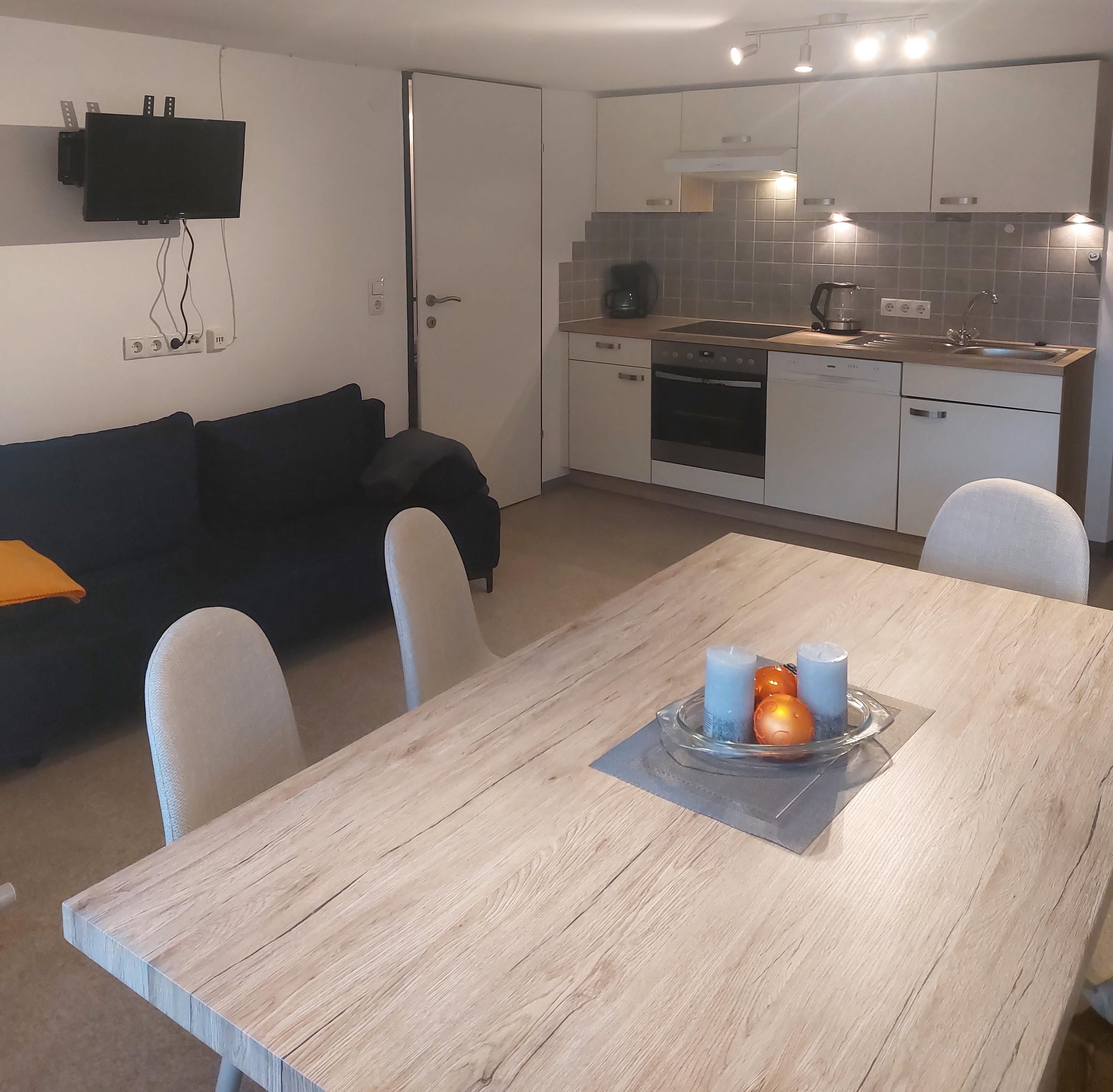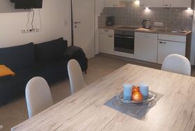 Appart Ruby (ca. 68 m²) besteht aus einem Dreibettzimmer, einem Doppelzimmer, einem Wohnraum mit ausziehbarer Couch (Schlafmöglichkeit für die 6. Person), vollausgestatteter Wohnküche (Spülmaschine, Cerankochfel, Backrohr, Kühlschrank, Kaffeemaschine, Wasserkocher uvm.) mit Essecke, Sat-TV, 1 Badezimmer mit Dusche, 1 separates WC. Terrasse zum Entspannen.