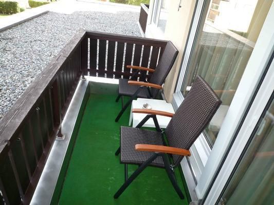 -Sonniger Süd-Balkon mit Tisch, Liegestühlen und sehr schöner Aussicht auf die Berge.