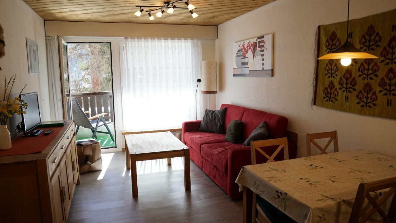 Gemütliche 2-Zimmer-Wohnung, ca. 50 m2 Wohnfläche, komfortabel eingerichtet, sehr ruhig gelegen. Hallenbad mit Panoramablick auf die Berge, 20m Becken und Nichtschwimmerbereich im Haus, dieses kann gratis benützt werden. Eine schöne Sauna ist ebenfalls vorhanden, diese kann in der Wintersaison 2 Tage die Woche gratis benützt werden. Die Sauna kann gegen Gebühr auch exclusiv gebucht werden. Ein Spielraum ist ebenfalls vorhanden. Eigener, zur Wohnung gehörender Parkplatz, mietbare Auto-Einstellhalle (sofern noch Plätze verfügbar) . Grosse Wiesen mit Bäumen vor dem Haus, (Ski)-Bushaltestelle vor dem Haus. Der Skibus und der öffentliche Nahverkehr in der Umgebung sind gratis, ausserhalb der Wintersaison ist auch die Bergbahn gratis. Bergbahnen, Bahnhof, Post, Einkaufsmöglichkeiten sowie der Ortskern in wenigen Minuten zu Fuss erreichbar. **** High Speed Internet/WLAN gratis ***