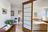 • Schlafzimmer mit Schiebetüre vom Wohnzimmer abgetrennt