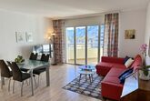 Die Wohnung besticht durch ein helles Wohn- und Esszimmer mit gemütlicher Sitzgarnitur, Clubtisch und einem Esstisch für 4 Personen. Vom möblierten Balkon genießen Sie einen herrlichen Blick über die Stadt – perfekt für einen Kaffee am Morgen oder einen entspannten Abend.