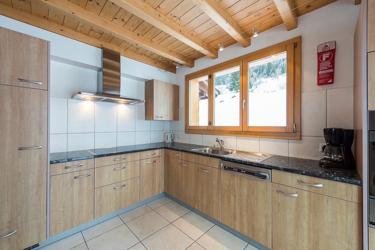 Die Ferienwohnung Stöckli bietet Platz für bis zu 4 Personen, ist rollstuhlgängig und bietet viel Raum für Familienferien. Alles ist im EG, der Eingansbereich/Garderobe, die Wohnküche, das Zimmer und das Bad. Die Küche ist ausgestattet mit Keramikherd, Kühlschrank, Backofen, Mikrowelle Geschirrspüler und Kapselkaffeemaschine. Der grosse Eichentisch bietet Platz für 6 Personen. Dazu gibt es eine TV-Anlage und ein grosses Sofa. Im Zimmer nebenan ist das Doppelbett und das Etagenbett. Mit direktem Zugang folgen sie ins Bad. Hier bieten wir eine Badewanne und eine grosse Dusche . Der schöne Gartensitzplatz direkt neben dem Spielplatz bietet eine wunderschöne Aussicht auf die Berge.