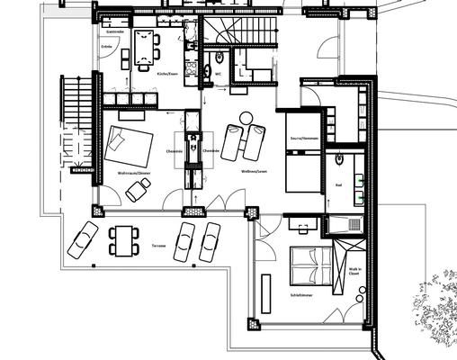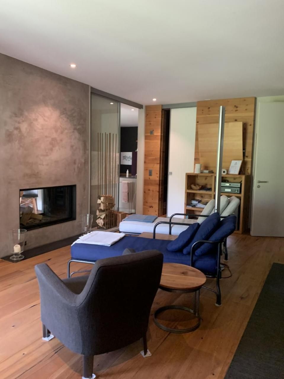 Im Inneren des Chalets erwartet Sie eine luxuriöse Ausstattung, die keine Wünsche offenlässt. Die modernen Annehmlichkeiten und die großzügige Raumaufteilung, kombiniert mit hochwertigen Materialien und edlen Möbeln, bieten einen Wohnkomfort der Extraklasse. Die Wohnzimmer sind gemütlich mit Sofa, Sesseln, einem Cheminee und einem Sofa-Bett eingerichtet, das sich bei Bedarf in zwei komfortable Betten umwandeln lässt. Im Schlafzimmer finden Sie ein Kingsize Bett, eine Ankleide, einen Pult und einen Safe. Die voll ausgestattete Küche wird ergänzt durch eine Auswahl an hochwertigen Bio-Produkten und Basisnahrungsmitteln für Ihre Selbstversorgung.
