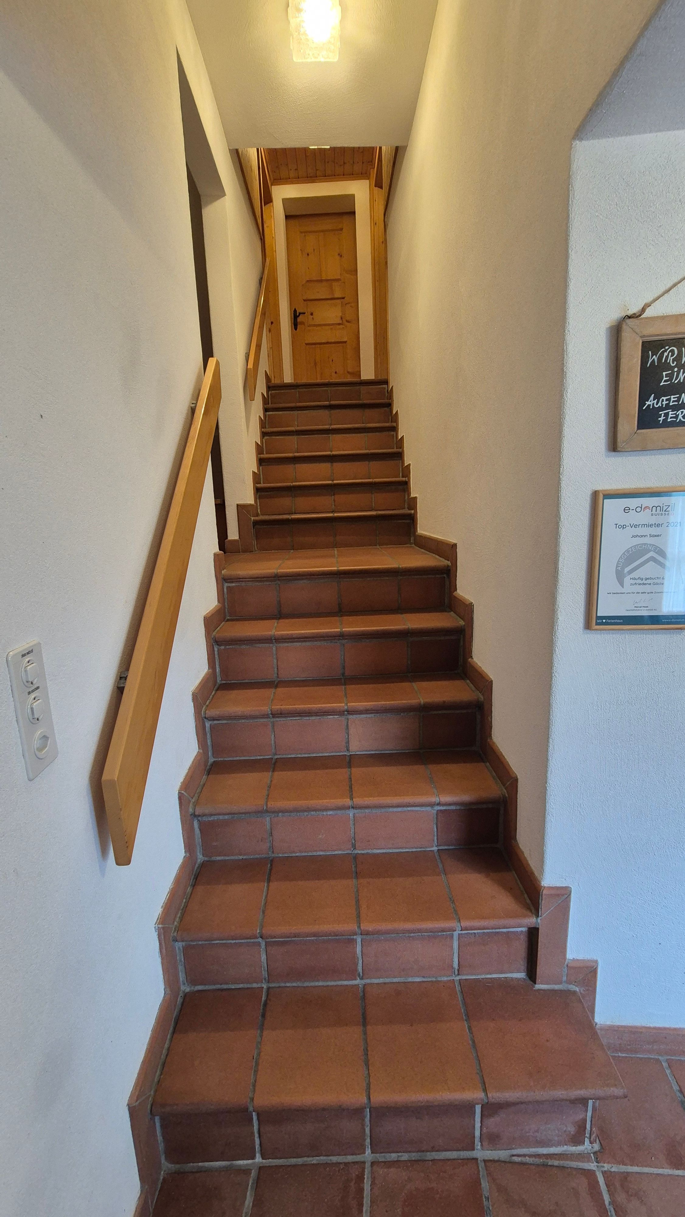 Innen bietet das Ferienhaus Stutz eine gemütliche atmosphärische Wohnumgebung. Mit drei Schlafzimmern, eines davon mit separatem Zugang über das gemeinschaftliche Treppenhaus, bietet es ausreichend Platz für die ganze Familie. Die Küche ist komplett ausgestattet - inklusive Geschirrspüler, Geschirr, Besteck und aller notwendigen Küchengeräte - ideal für die Zubereitung gemeinsamer Mahlzeiten und zum Genießen in heimischer Atmosphäre.