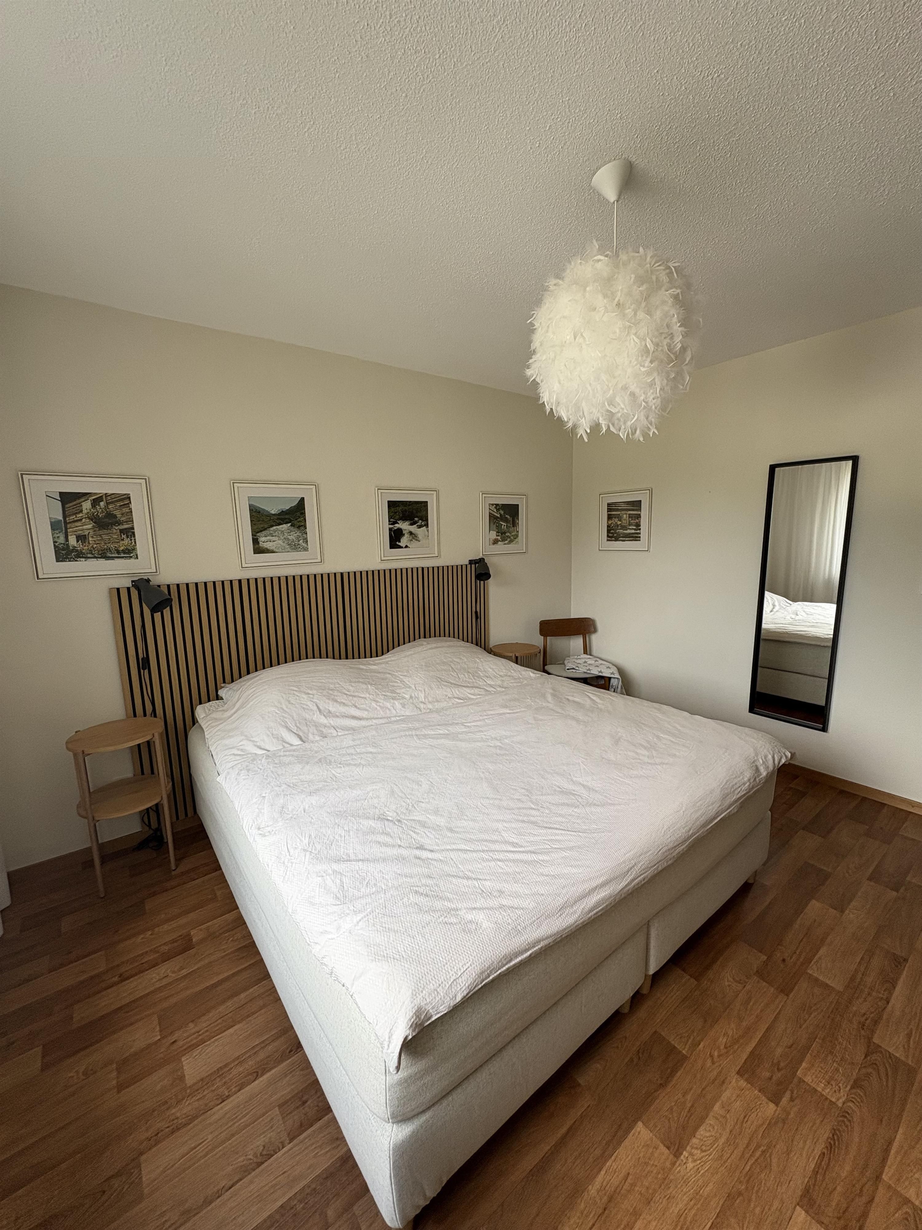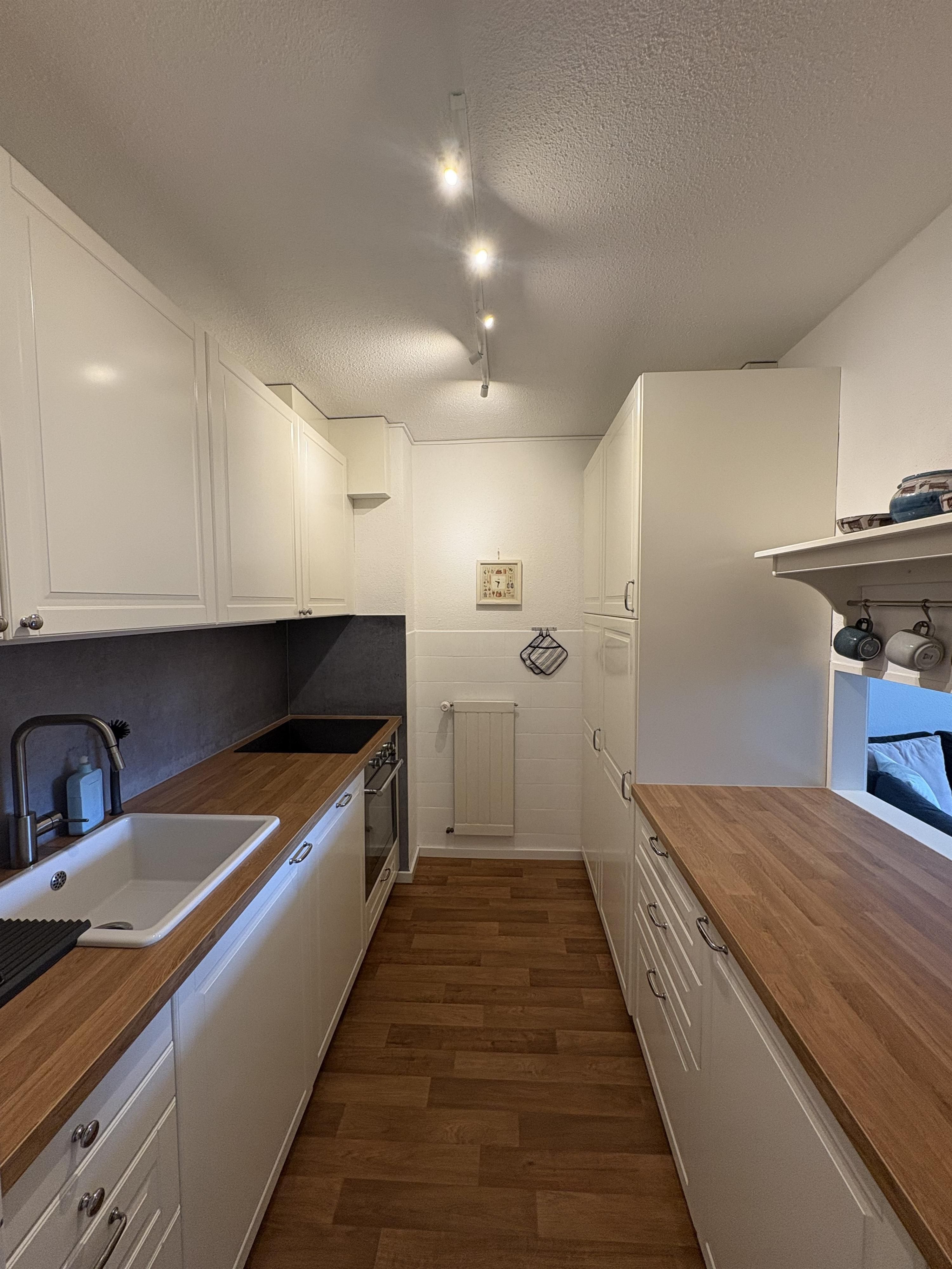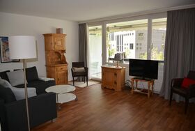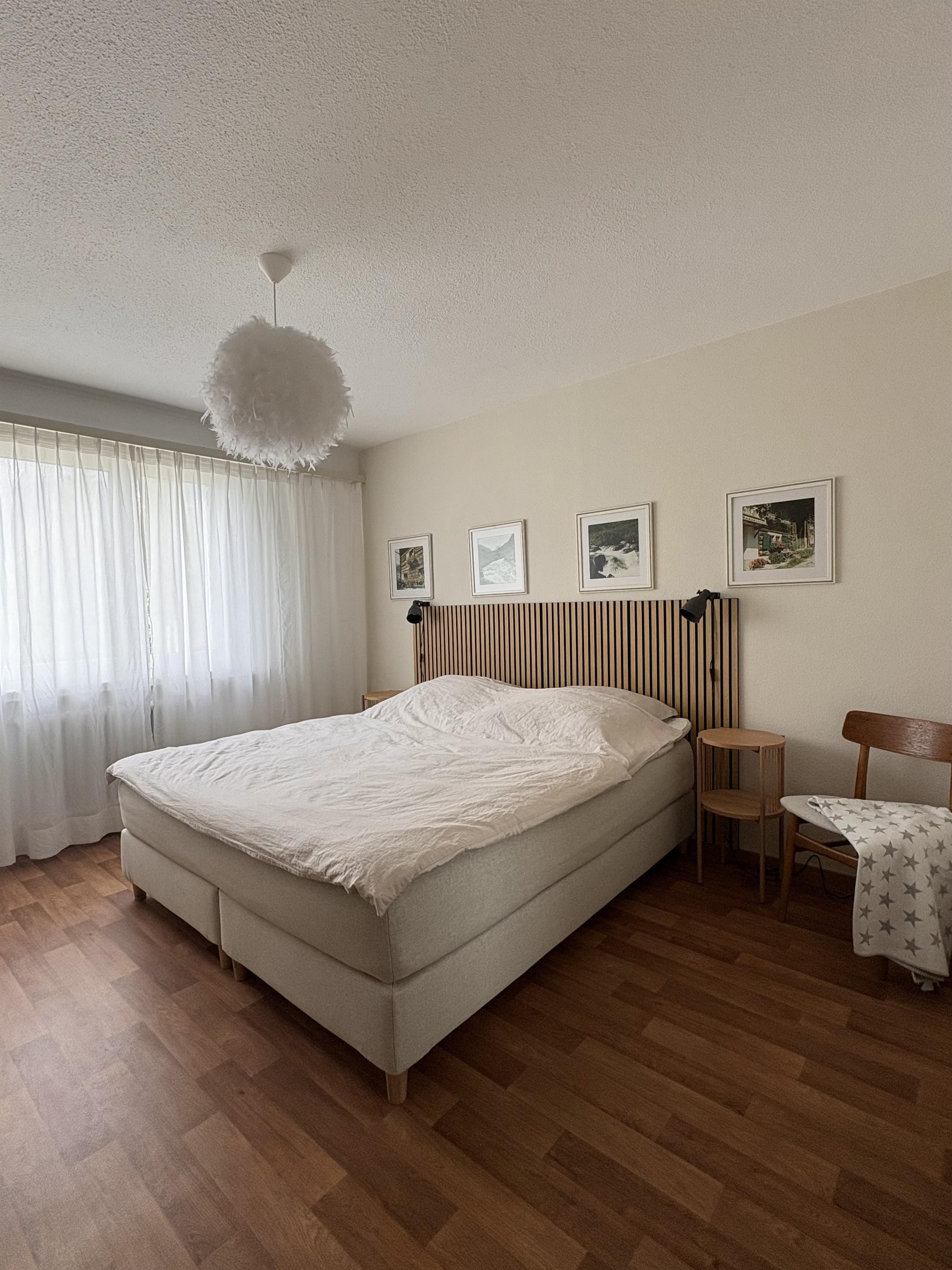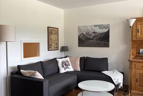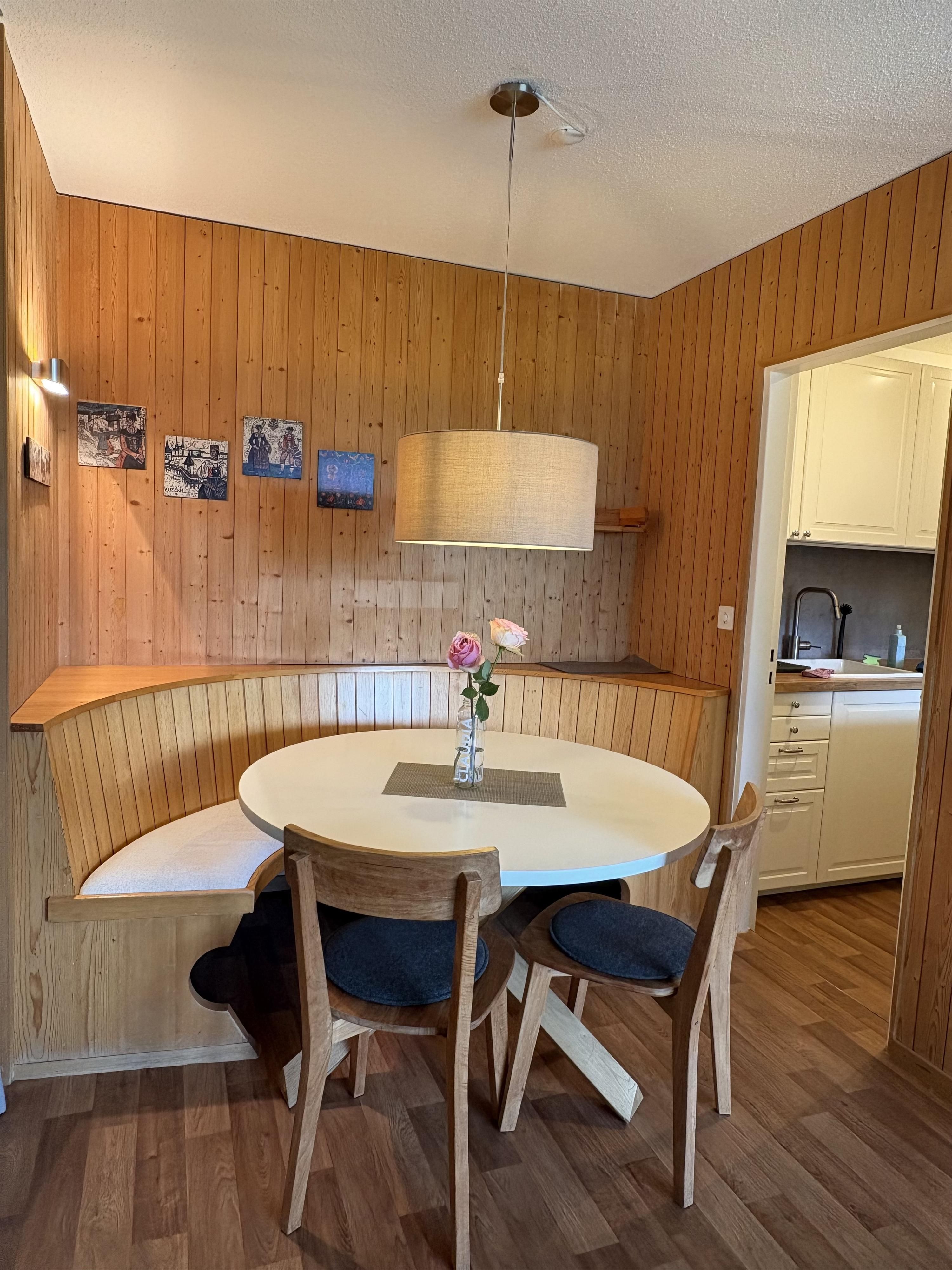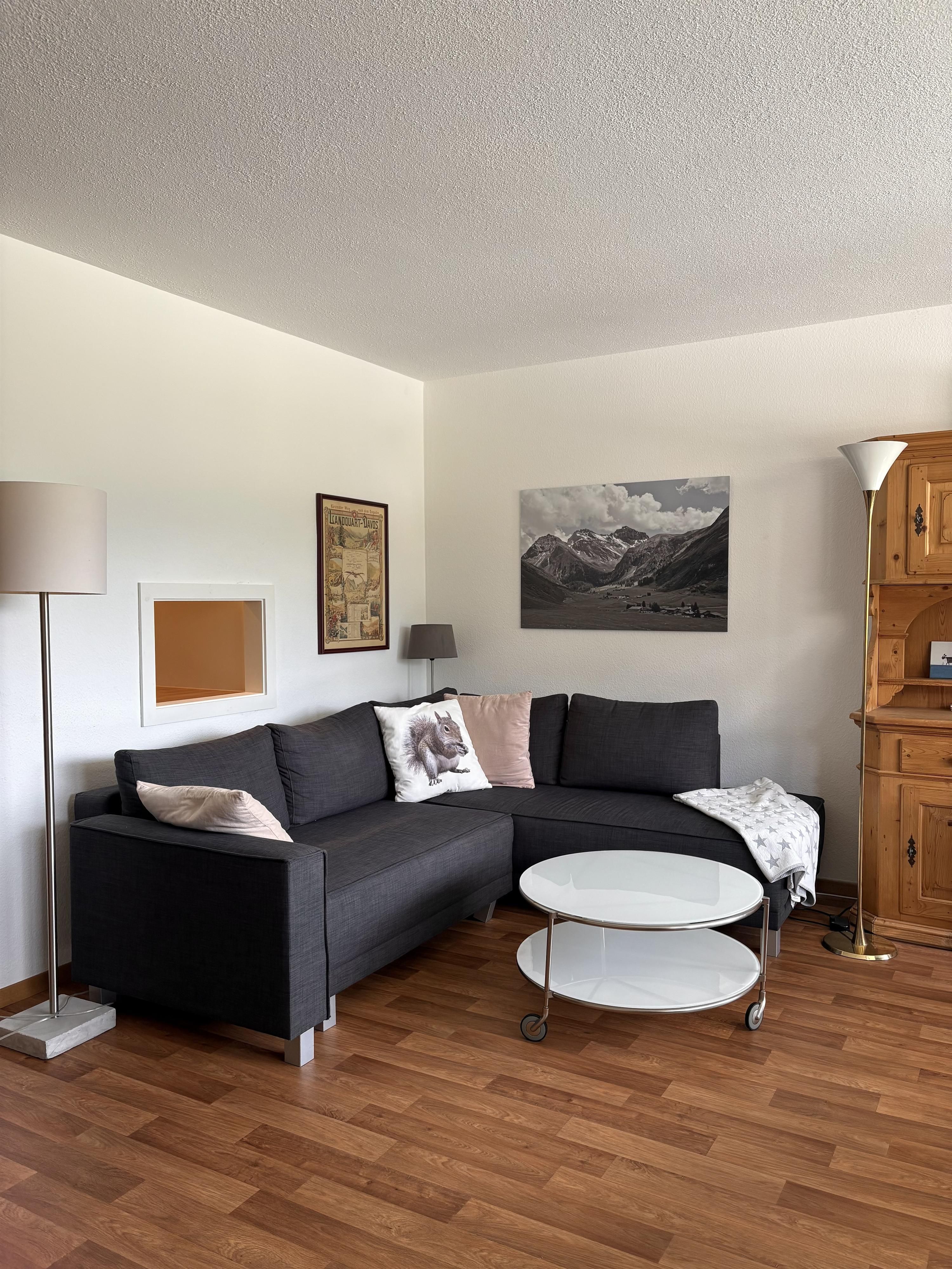 2 1/2 Zimmerwohnungen (ca. 54m 2) im 2. Stock; Mehrfamilienhaus mit Lift; Balkon Südwest; Autoabstellplatz vor dem Haus; Mitbenützung des Skiraumes, der Waschmaschine; neue Küche im Landhausstil mit Ceranfeld, Backofen und Dunstabzugshaube, großem Kühlschrank, Spülmaschine und eingebauter Mikrowelle; Bad/WC; 1 Schlafzimmer (2025) mit Boxspring-Bett 180*200cm, und 2 Klappbetten im Wohnzimmer, Polstergruppe, Essecke; Bettwäsche, Frotteewäsche, Küchentücher, Duvet nordisch; Telefon, Digital-TV, Internet und WLAN; Abfallsäcke blau; Nichtraucher-Wohnung; Achtung! Tiere sind nicht erlaubt, aber es kann dennoch Tierhaare in der Wohnung haben!