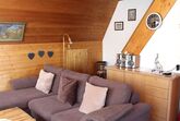 Die Ferienwohnung ist gemütlich eingerichtet und auf zwei Etagen eingeteilt. Die Wände in der ganzen Wohnung sind getäfert. Zur Wohnung gehört eine grosse Terrasse mit Liegestuhl. Technische Einrichtung
