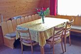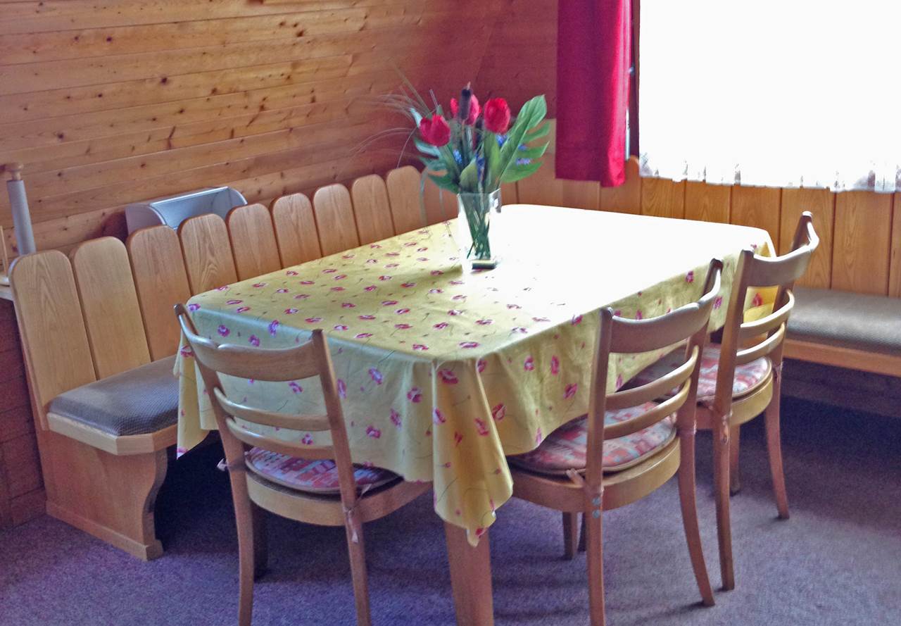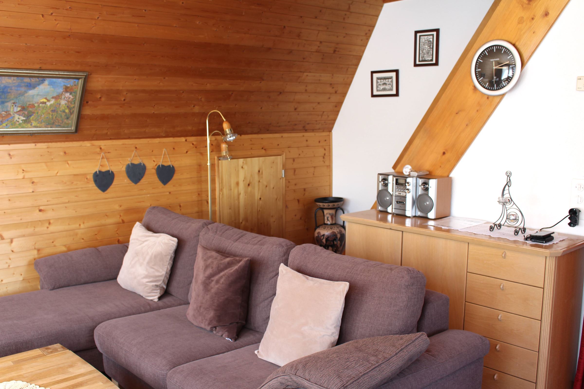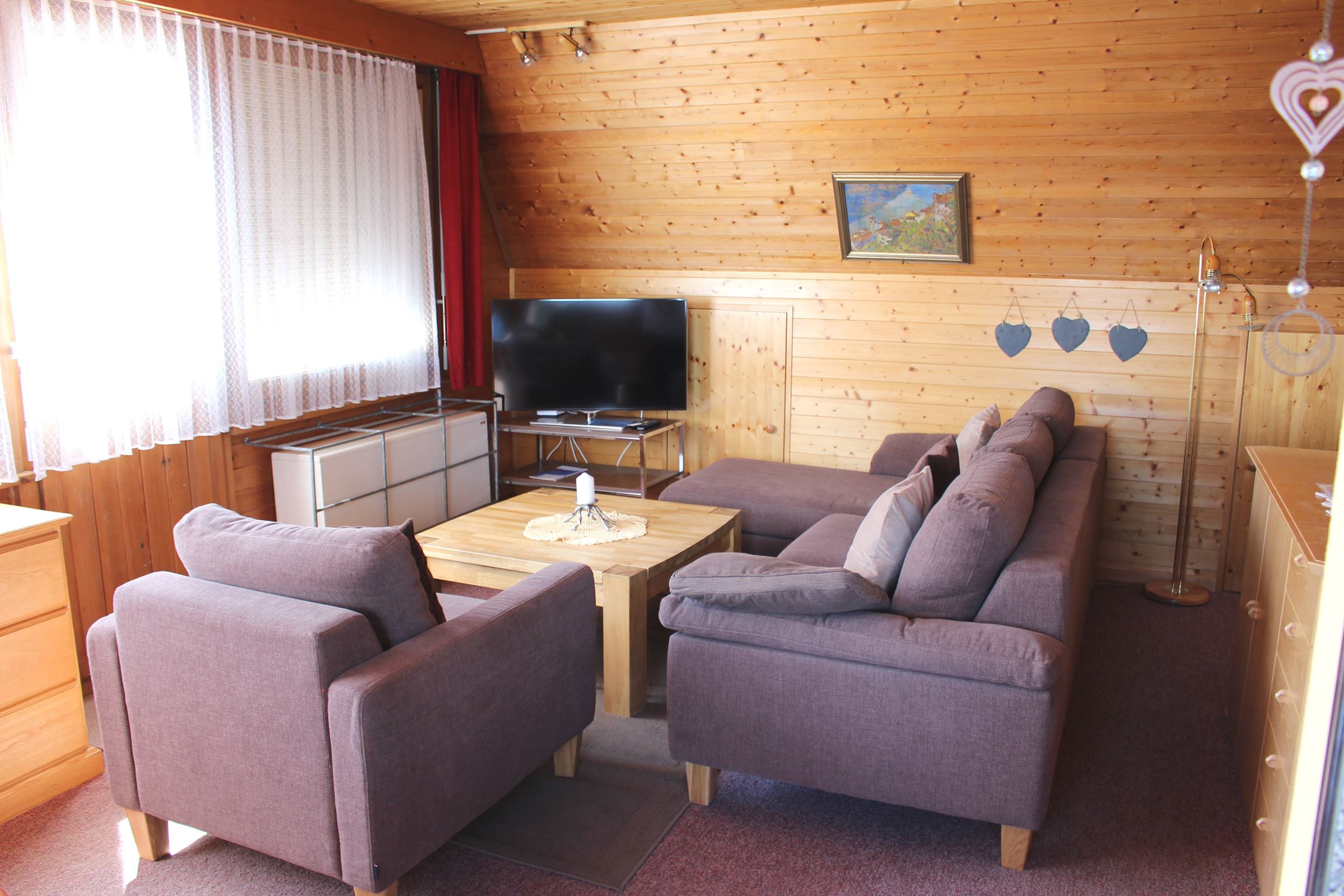 Die Ferienwohnung ist gemütlich eingerichtet und auf zwei Etagen eingeteilt. Die Wände in der ganzen Wohnung sind getäfert. Zur Wohnung gehört eine grosse Terrasse mit Liegestuhl. Im Wohnzimmer befindet sich ein TV mit Swisscom TV und ein CD-Player. WLAN ist in der ganzen Wohnung kostenlos vorhanden. Zudem gibt es eine Elektroheizung, die individuell geregelt werden kann.