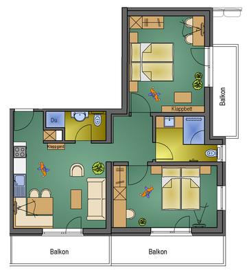 Die Wohnung befindet sich auf der Südostseite. Grossartige Aussicht. 1 Wohnküche, 2 Schlafzimmer, 2 Balkone, 2 X Dusche WC. sowie Sat-TV, Radio, Telefon, Internetanschluss, WLAN, Kaffeemaschine, Toaster, Backofen, Mikrowelle, Kochgteschirr, Bett- und Küchenwäsche, Bade- und Handtücher, Haarfön usw.