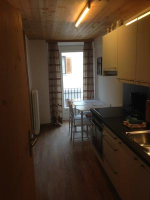 2-Zimmerwohnung im ersten Stock mit rustikalem Arvenholzzimmer, Schlafzimmer und moderner Küche. Bei Buchungen ab 3 Personen hat es ein zweites separates Schlafzimmer über den Gang oder Verbindungstüre. Dusche und WC befindet sich im Flur und ist nur für Wohnung Nr. 5 reserviert. Balkon zum Dorfplatz vorhanden.